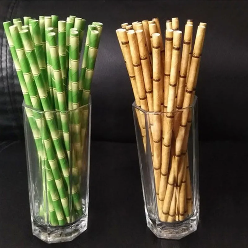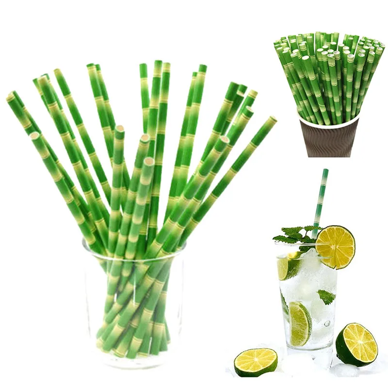 Le lot comprend 50 pailles en papier bambou vert (les autres accessoires présents sur les photos ne sont pas inclus).
