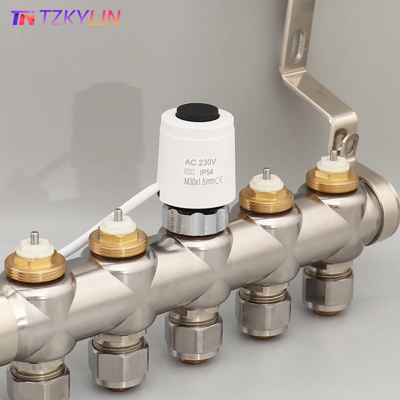 Voici les points importants à retenir sur le produit « Vanne de chauffage au sol normalement ouverte, actionneur thermique électrique, collecteur de chauffage au sol, thermostat, AC 230V, M 30×1,5 »: