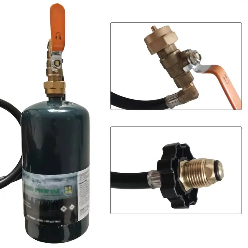 Cet adaptateur se connecte à une bouteille de propane de 1 LB grâce à sa soupape de commande, tandis que l’autre côté se connecte à un réservoir de propane de 20 à 50 LB. Vous n’avez pas besoin de déplacer le grand réservoir de propane, il vous suffit d’utiliser ce tuyau d’extension pour remplir directement la bouteille de propane de 1 LB à travers le grand réservoir.