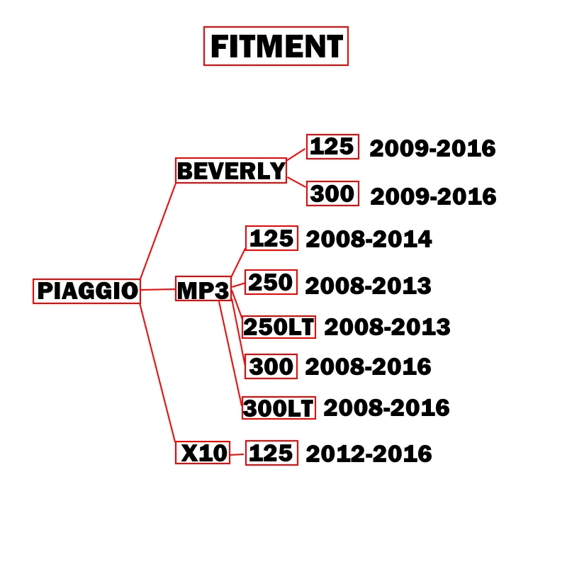 - Compatibilité : convient aux modèles Piaggio X10 MP3 125 250 300 250LT 300L avec un diamètre de 51 mm