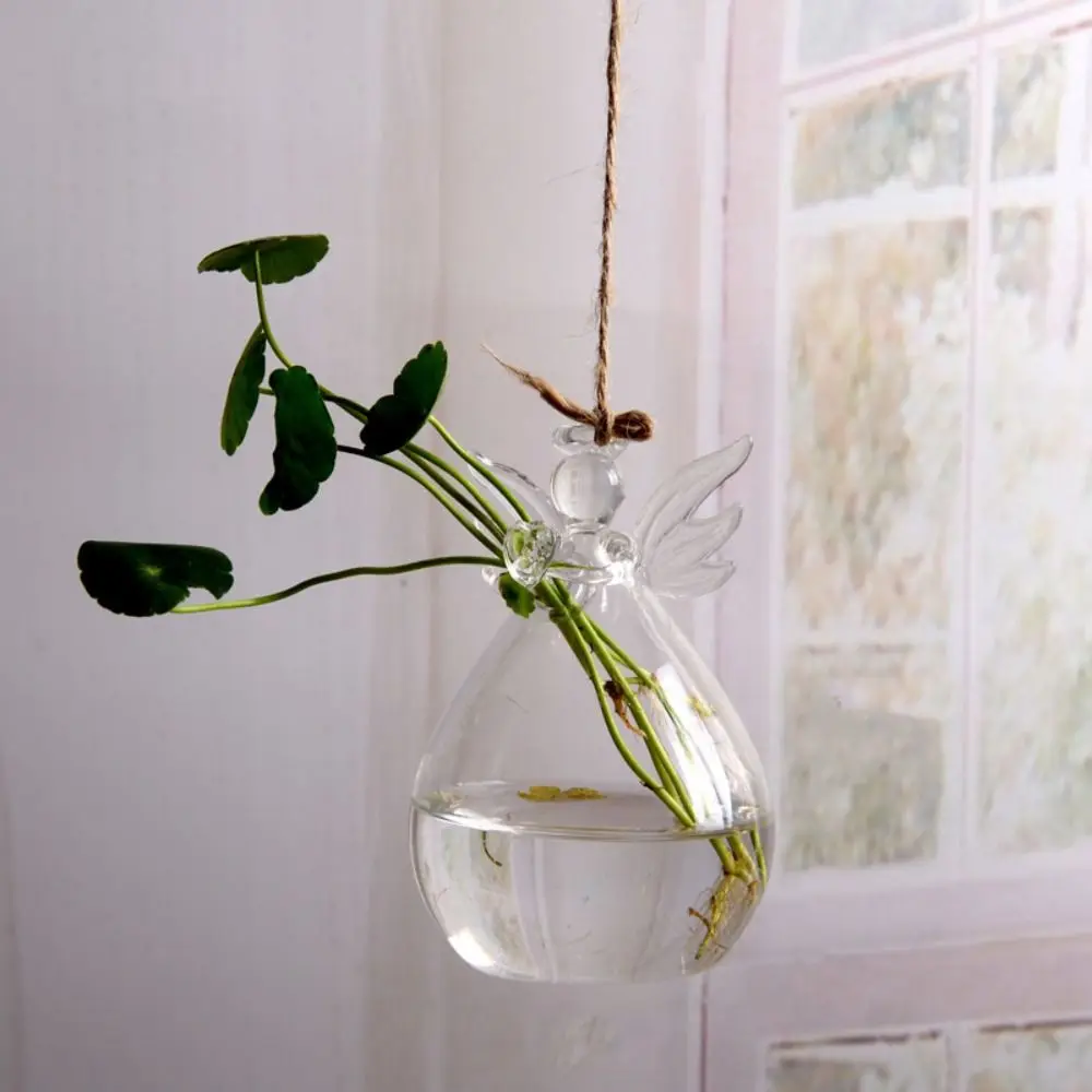 Mignon Verre Ange Forme Fleur Plante Suspendus Vase Home Office Mariage Décor