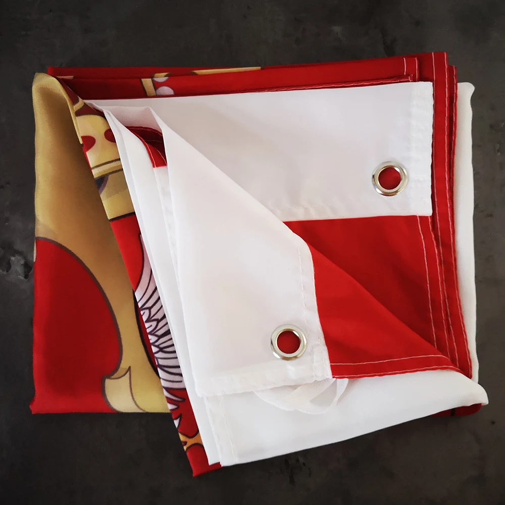 La couverture d’arbre en polyester imprimé au sens du Commonwealth polono-lituanien avec une conception d’œillets en laiton est une option attrayante pour décorer et promouvoir votre entreprise ou événement. La couverture est résistante aux intempéries, ce qui la rend durable pour une utilisation en extérieur. Elle est également facile à installer grâce à sa conception d’œillets en laiton, permettant de l’attacher solidement à un arbre.