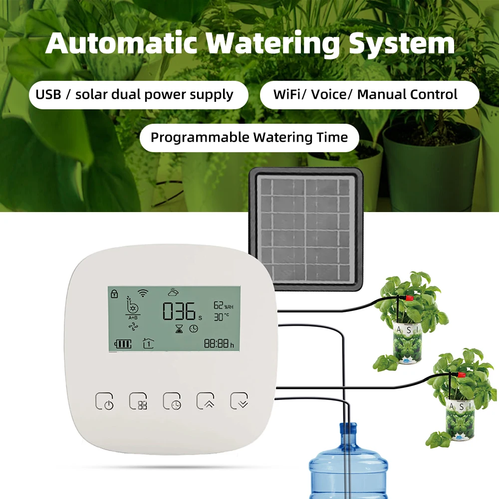 Le dispositif d’arrosage automatique intelligent WiFi permet de contrôler à distance l’arrosage de votre jardin grâce à une connexion WiFi. Vous pouvez programmer l’arrosage de vos plantes depuis votre smartphone, où que vous soyez, et même le contrôler vocalement.