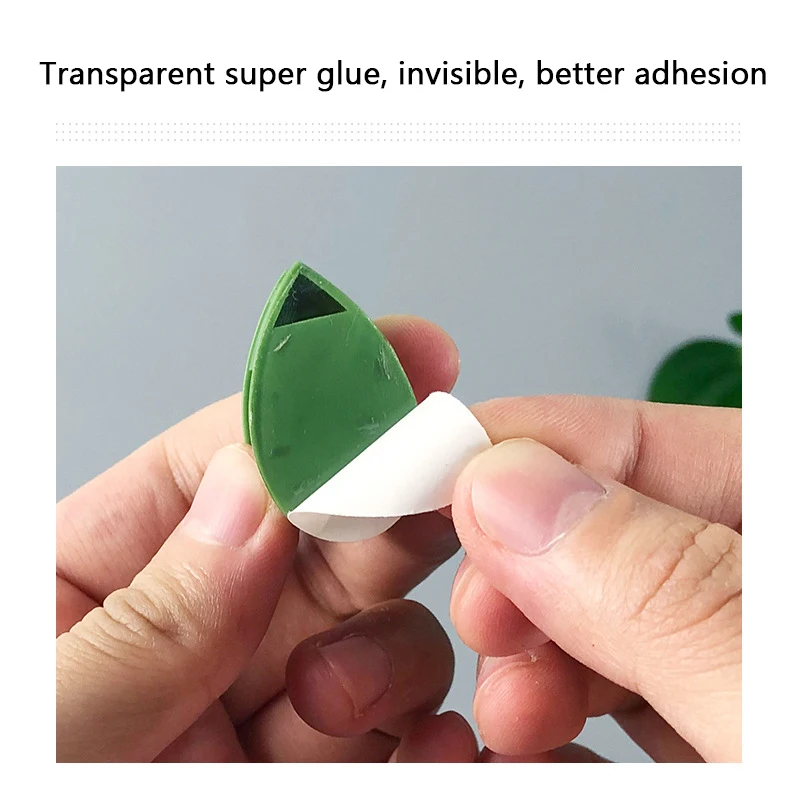 — Adhésif à haute viscosité: L’adhésif est également coupé en formes de feuilles. Avant utilisation, collez le dos au clip de la plante. Il peut être fermement collé au mur, visuellement ces clips de plantes peuvent être intégrés avec des plantes vertes. Il est invisible mais beau.