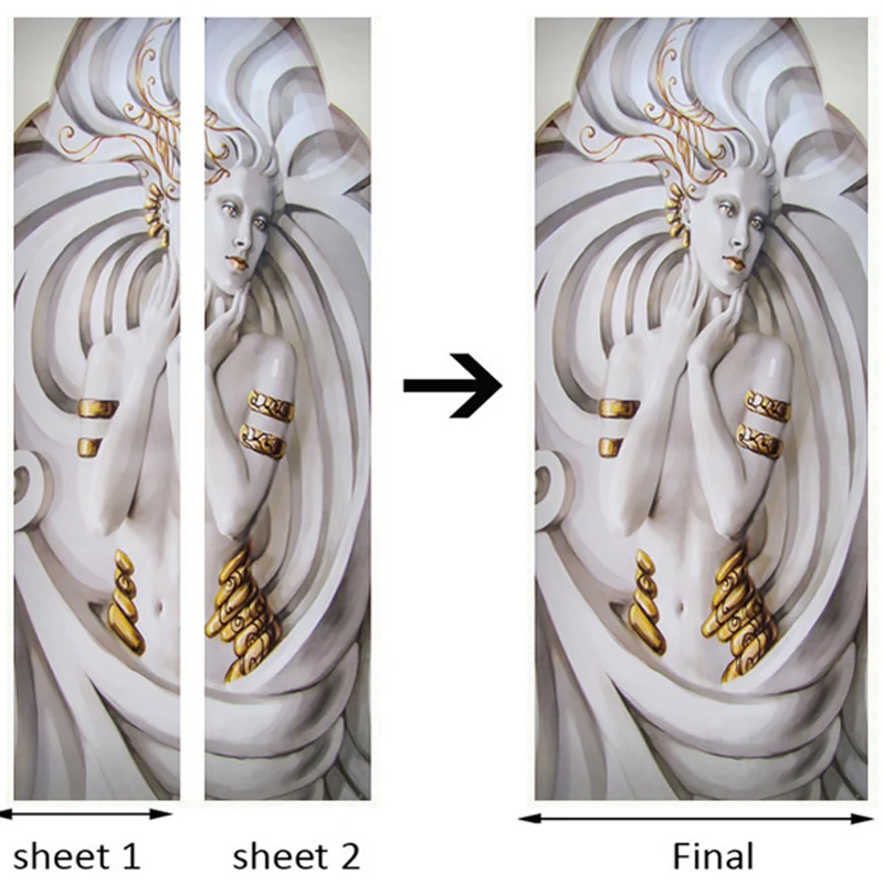 Les principaux points à retenir concernant l’autocollant de porte de sculpture de figure d’instituts 3D de style européen, décor à la maison de luxe, papier peint, décalcomanie murale, pâte de porte auto-adhésif en PVC sont :