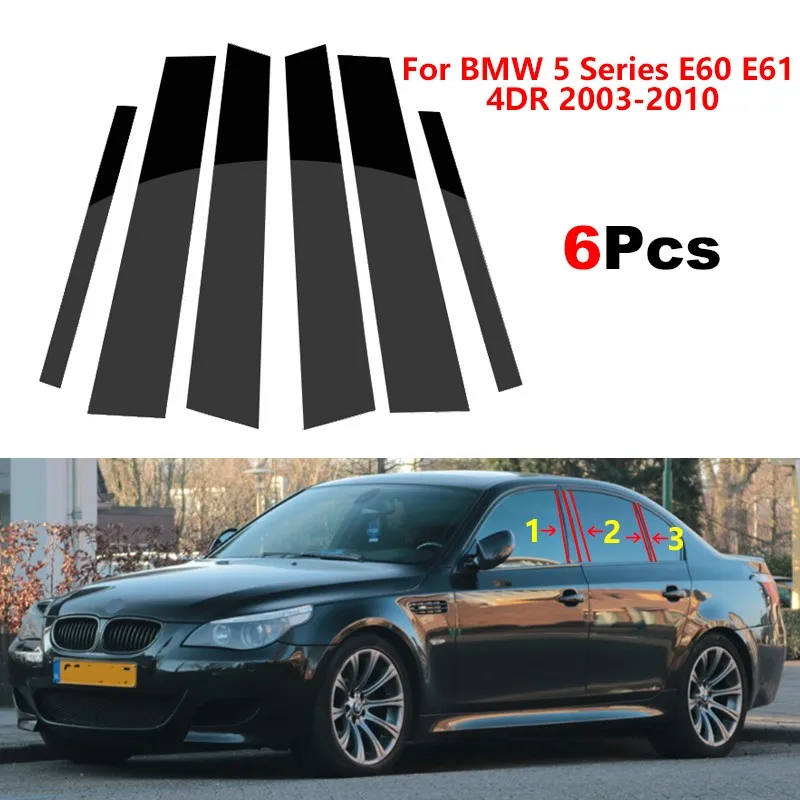 Le pilier de fenêtre de voiture autocollant noir brillant pour BMW série 5 E60 E61 4DR 2003-2010 est un excellent accessoire extérieur pour donner à votre voiture un look luxueux. Sa fabrication en plastique PC le rend plus résistant aux rayures que d’autres couvercles en plastique ABS.