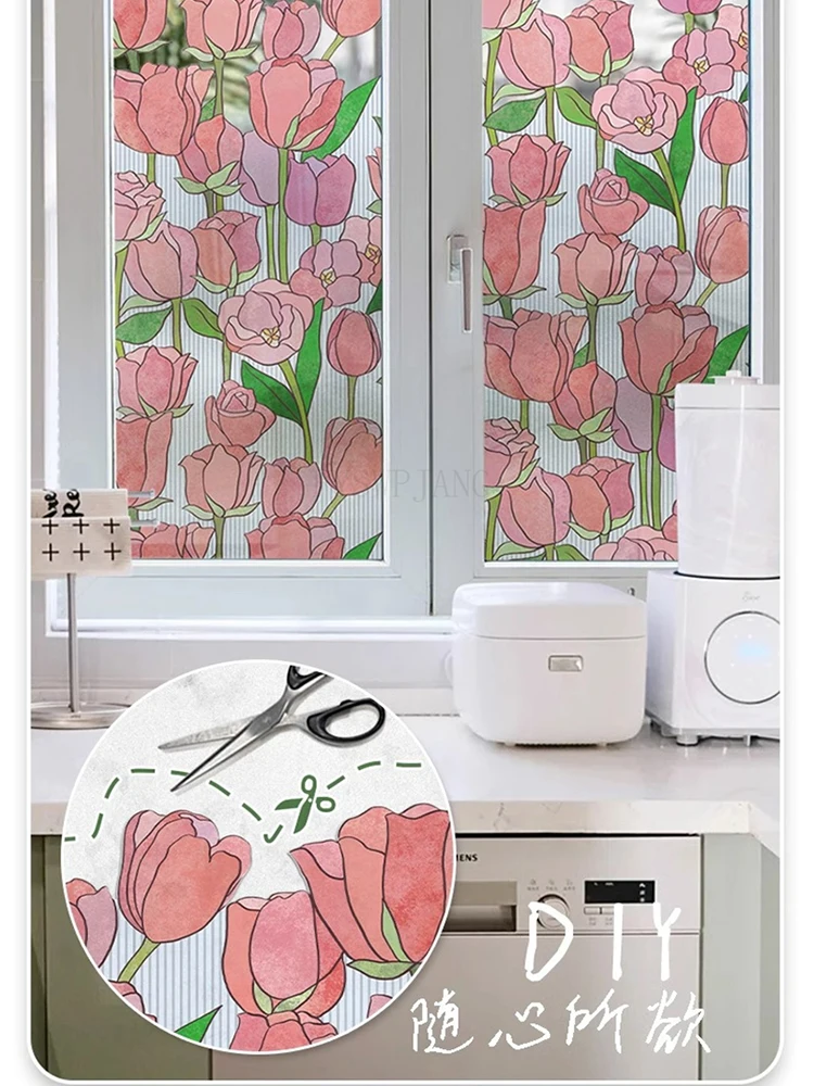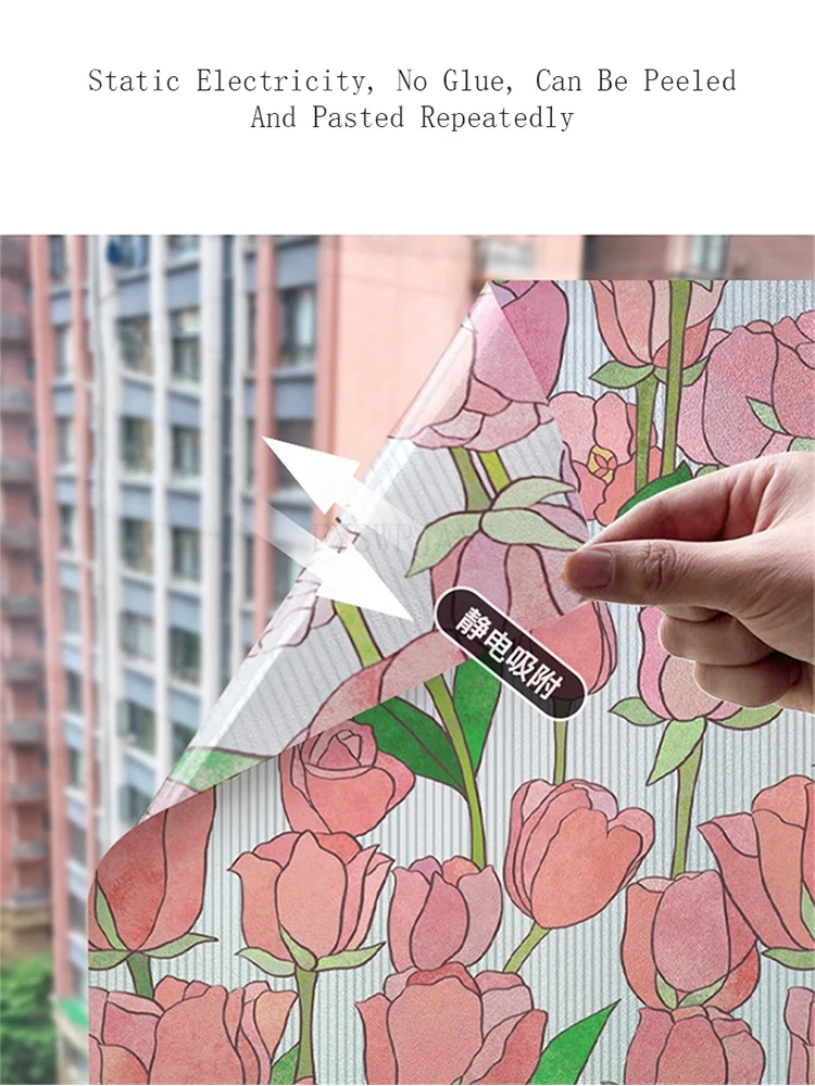 L’autocollant en verre électrostatique tulipe est un film en PVC de couleur opaque et translucide, idéal pour la décoration de la maison et la confidentialité dans la salle de bain. Il mesure 50CM x 2M et peut être appliqué facilement en pulvérisant de l’eau.