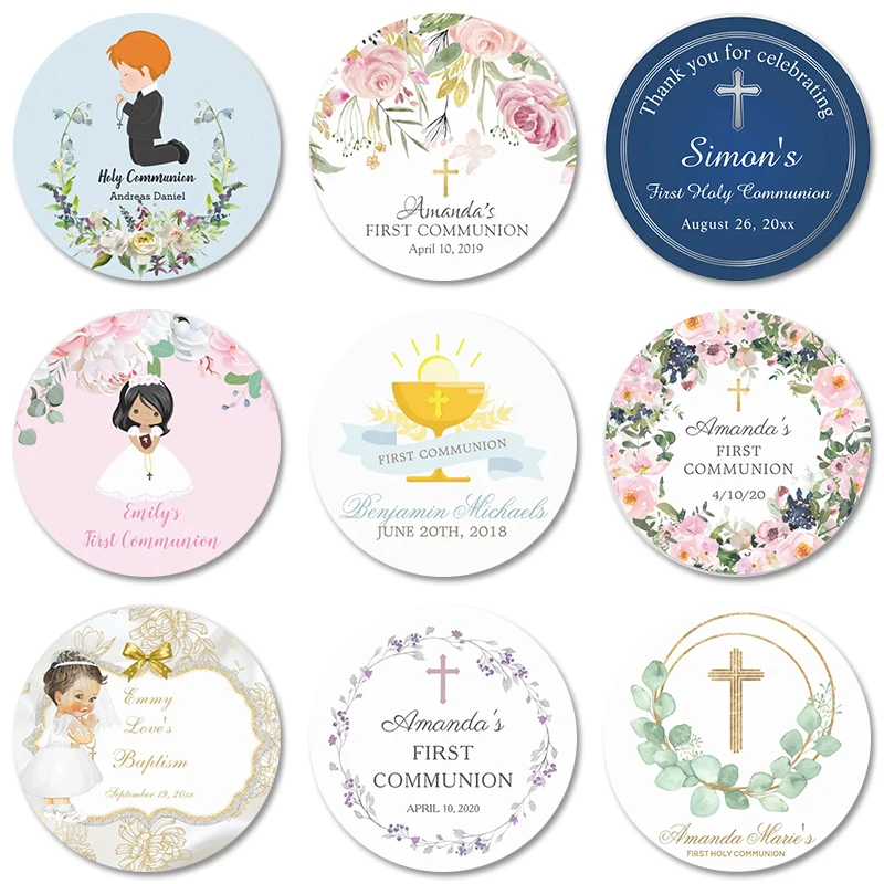 Les autocollants de première communion avec nom personnalisé sont un excellent souvenir pour célébrer un événement spécial. Ils sont disponibles en ensemble complet, avec différentes tailles au choix: