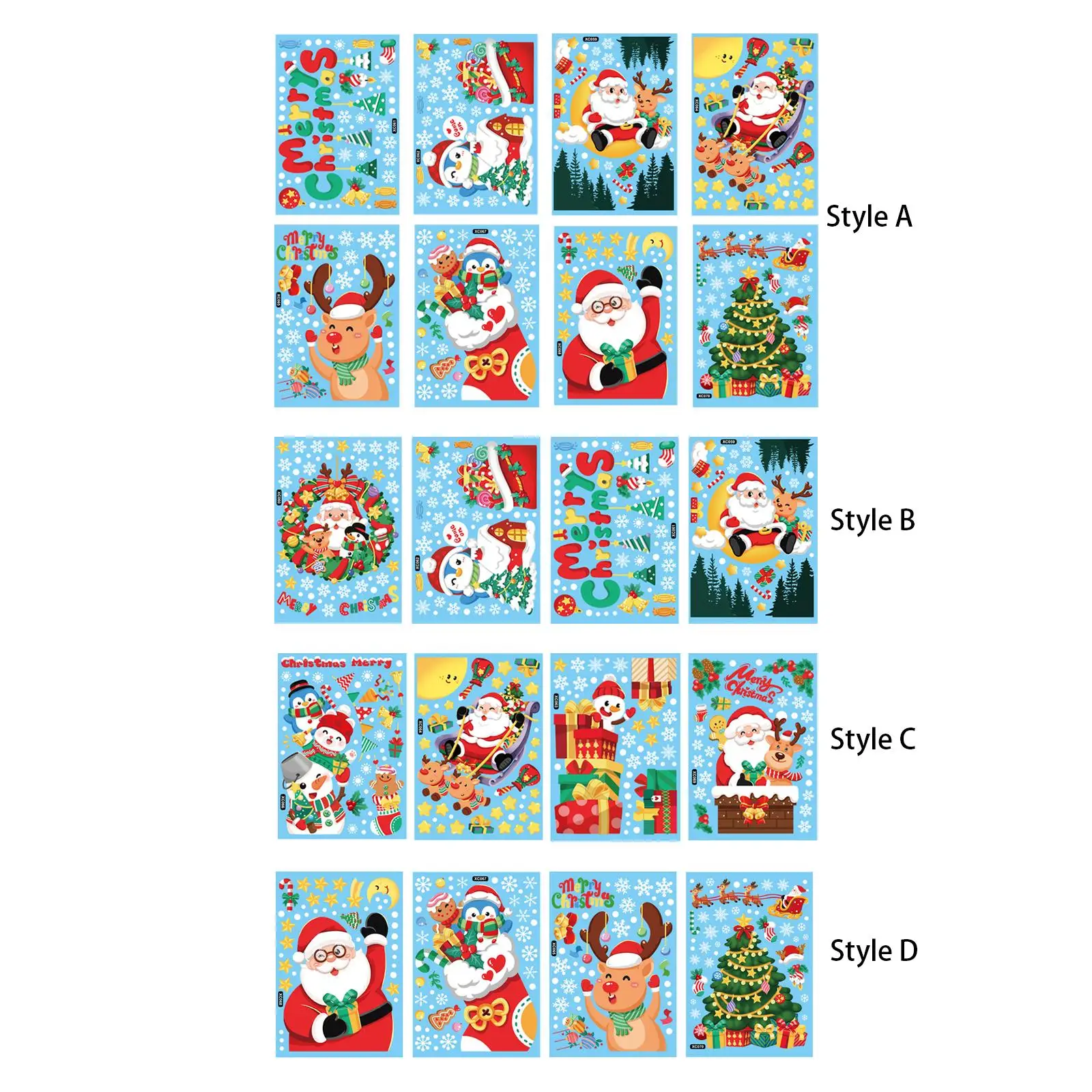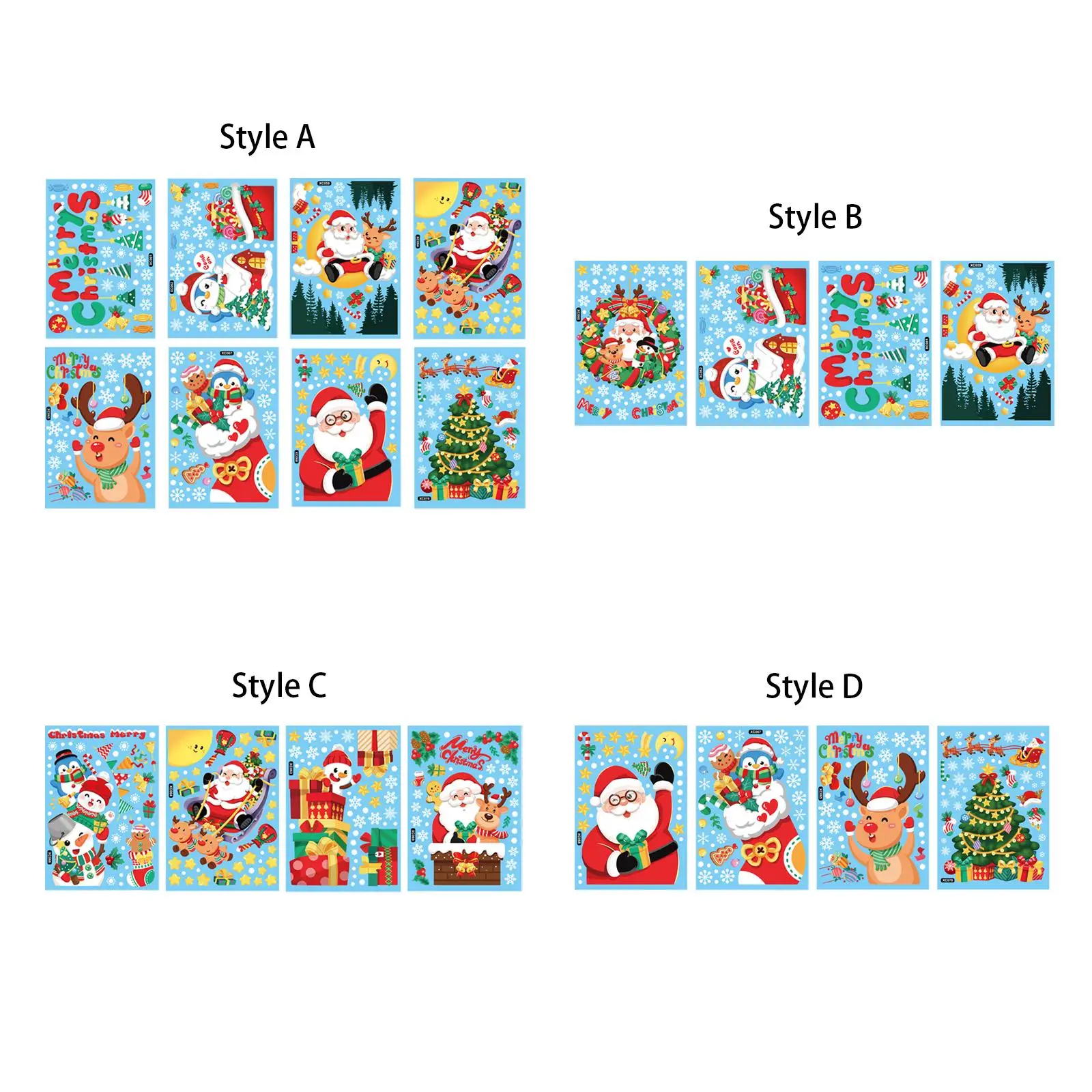 | Styles disponibles | Style A: 8 feuilles d’autocollants pour fenêtre Style B: 4 feuilles d’autocollants de fenêtre Style C: 4 feuilles d’autocollants fenêtre Style D: 4 feuilles d’autocollants pour fenêtres |