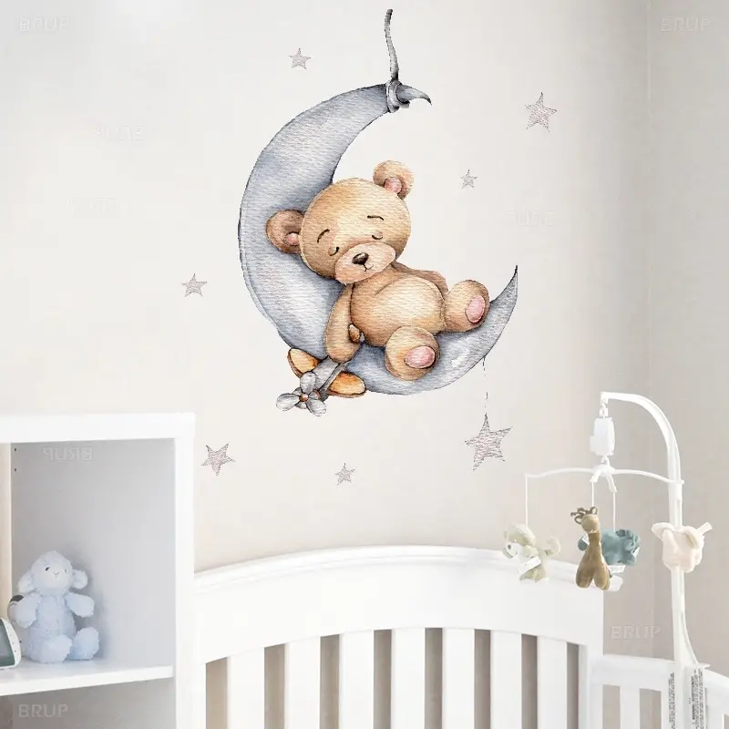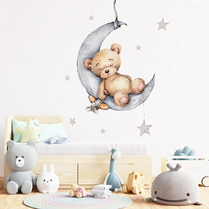 Les autocollants muraux Ours en Peluche Dormant sur la Lune et les Étoiles sont un excellent choix de décoration pour la chambre d’enfant ou de bébé. Avec leur conception mignonne et adorable, ces stickers ajouteront une touche de plaisir à n’importe quelle pièce.