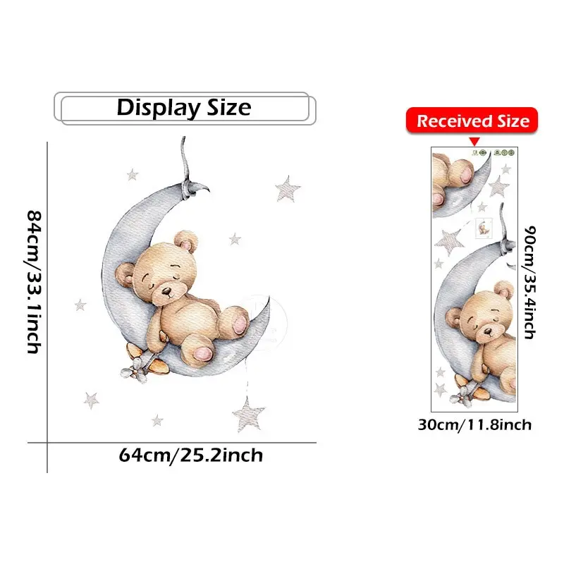 | Conception mignonne et adorable: | Les autocollants muraux comportent un ours en peluche de dessin animé qui dort sur la lune et les étoiles, ce qui en fait un design mignon et adorable qui ajoutera une touche de plaisir à la chambre de n’importe quel enfant. |
