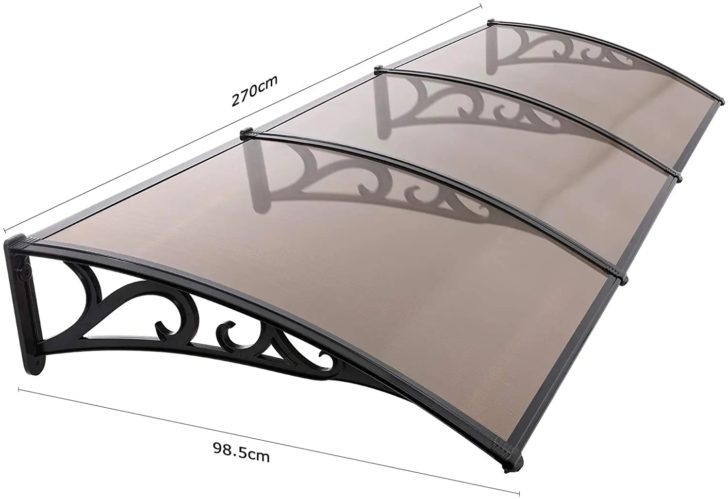L’auvent pour porte d’entrée en polycarbonate est un accessoire pratique et esthétique pour votre maison. Avec sa belle apparence et sa surface lisse en polycarbonate transparent, il ajoute une touche d’élégance à l’entrée de votre maison. Disponible en trois couleurs différentes (blanc, noir et brun foncé) et deux tailles (190×98.5 cm, 270×98.5 cm), il s’adapte à tous les styles et dimensions de portes.