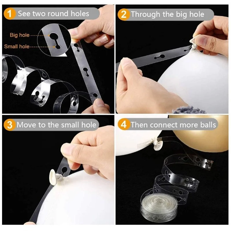 - Le kit est livré avec toutes les fournitures nécessaires, y compris les chaînes pour assembler les ballons.