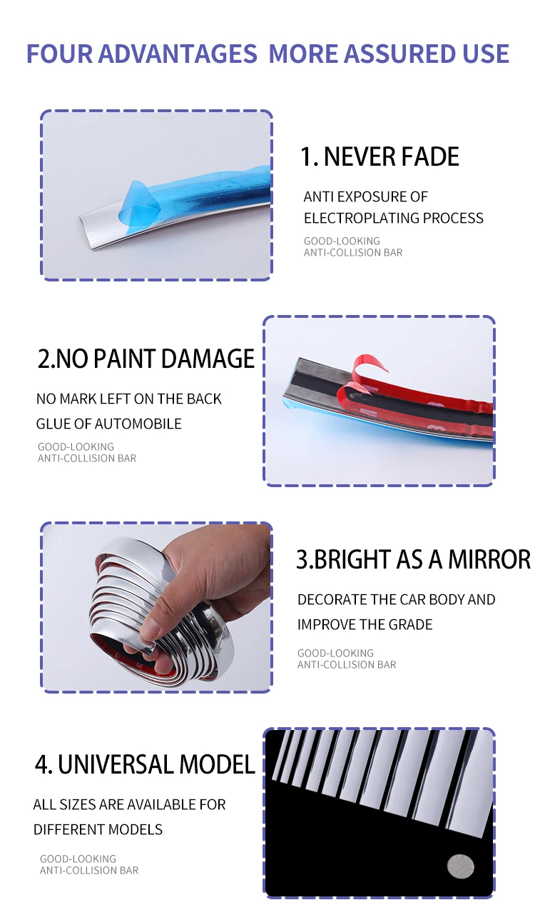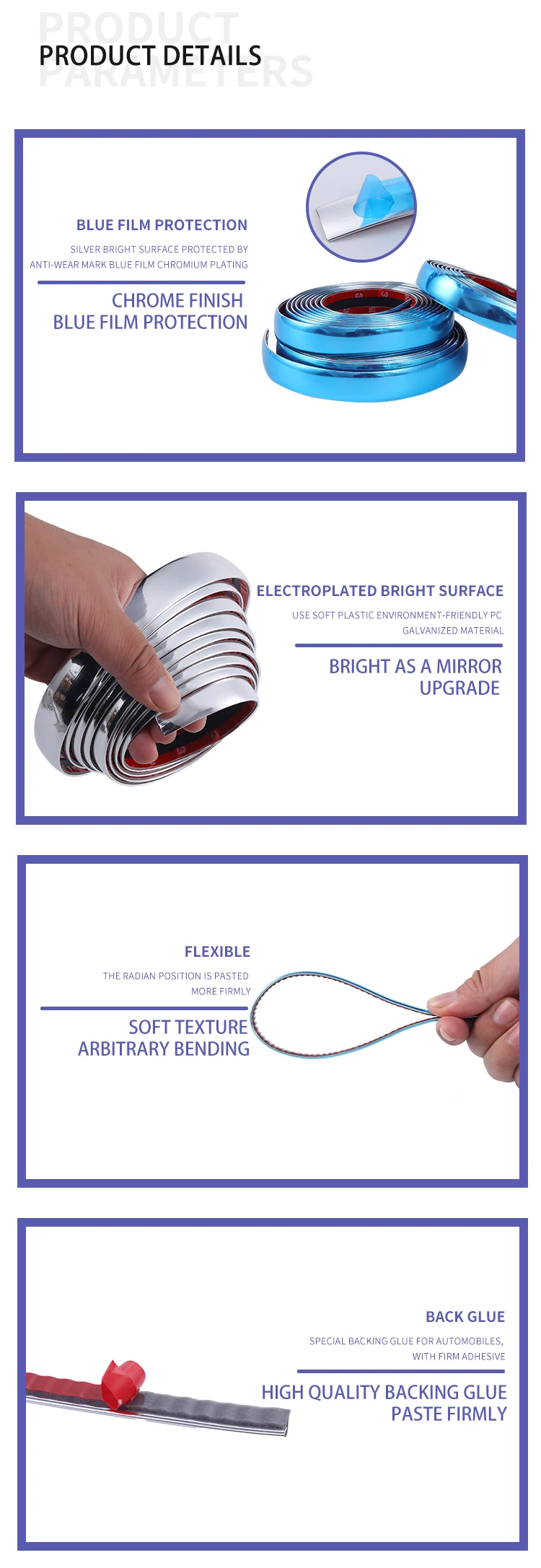 Bande de carrosserie Pare-chocs de porte automobile Moulure de protection Styling Trim Sticker Anti-Collision Tape Bumper Grill Chrome Moulding Trim