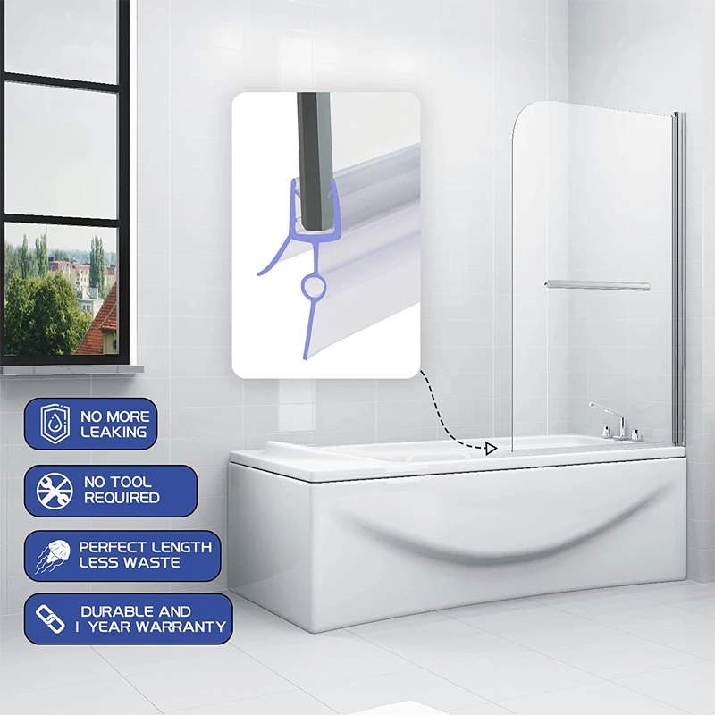 Le joint de scellage en PVC pour écran de douche est spécialement conçu pour les portes droites ou incurvées des cabines de douche. Fabriqué en PVC de qualité durable, ce joint respecte l’environnement et ne jaunira pas avec le temps. Son installation est simple, il suffit de le pousser sur le verre, aucune colle ni outil n’est nécessaire. De plus, sa taille peut être facilement ajustée en le coupant avec des ciseaux si nécessaire.