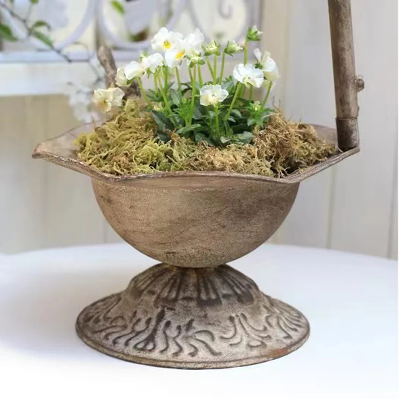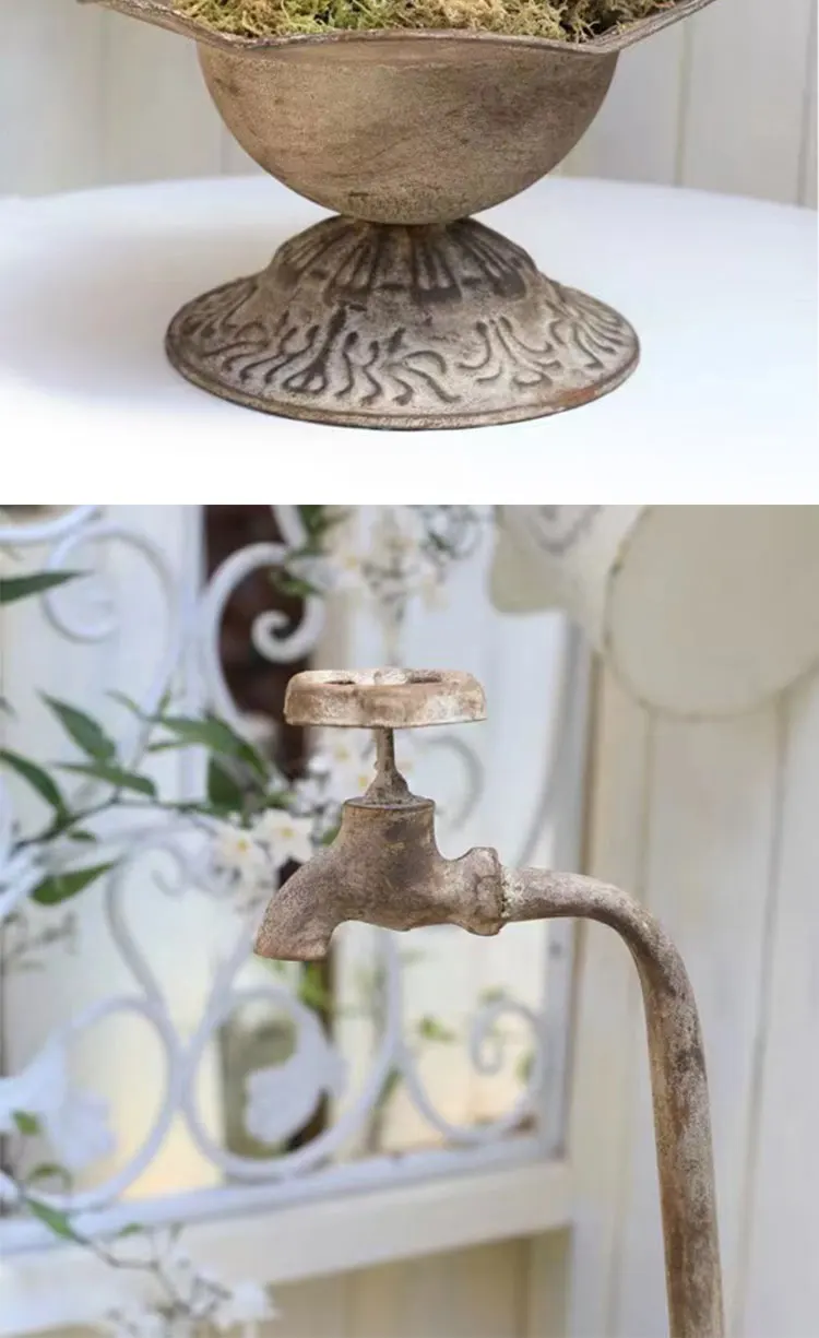 Spa extérieur de bain d’oiseau de jardin avec la décoration de jardin de baignoire de pot de fleurs de robinet en métal