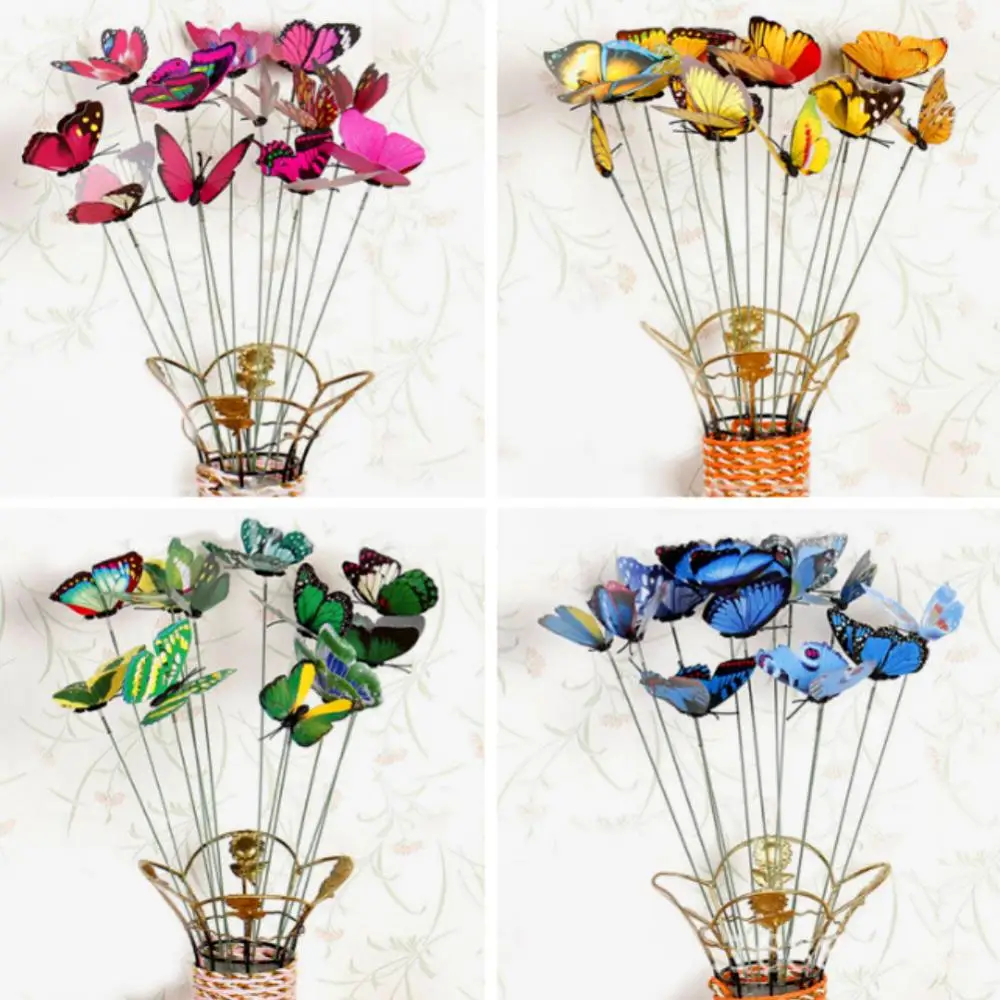 Le bâton de papillon de simulation extérieur est un ornement de pot de fleur de jardin composé de 10 pièces par ensemble. Il est fabriqué en PVC de haute qualité, ce qui lui confère un aspect vif et réaliste. De plus, il ne se décolore pas et peut se conserver longtemps.