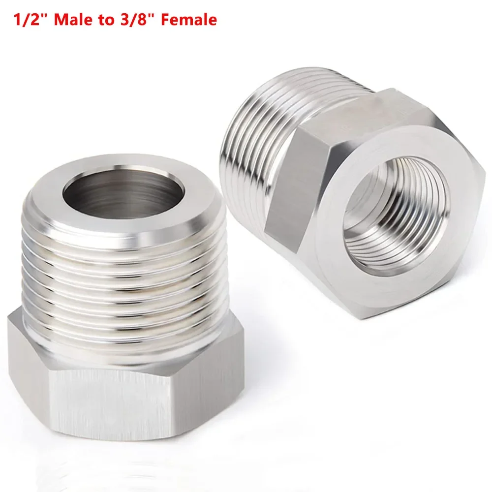 Filetage NPT mâle de 1/2 pouces à filetage femelle NPT de 3/8 pouces.