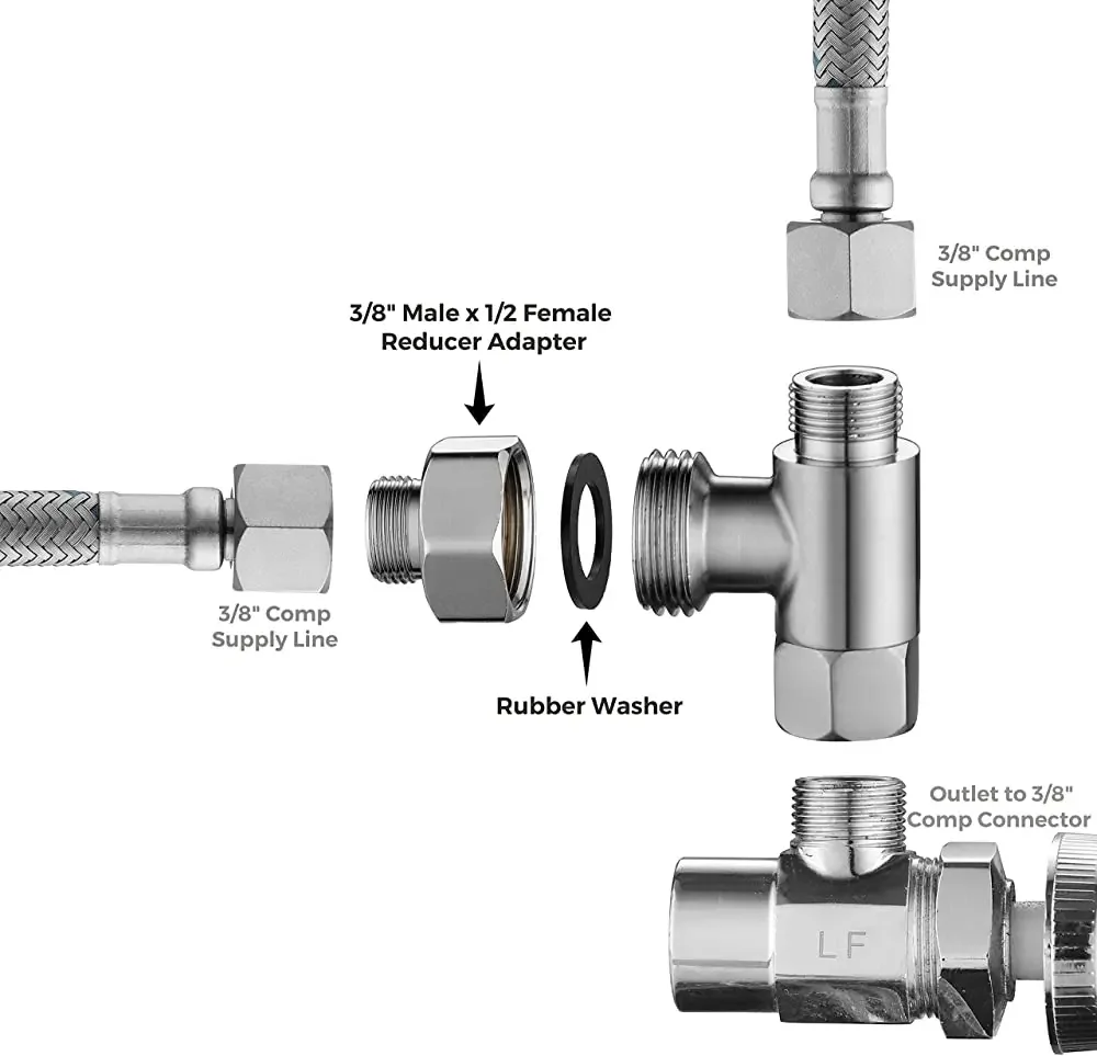 Oui, cet adaptateur convient à la plupart des tailles de tuyau avec une conversion de 3/8″ en butée d’angle de 1/2″.