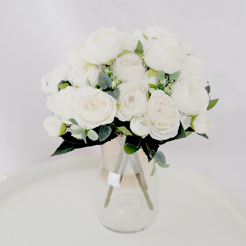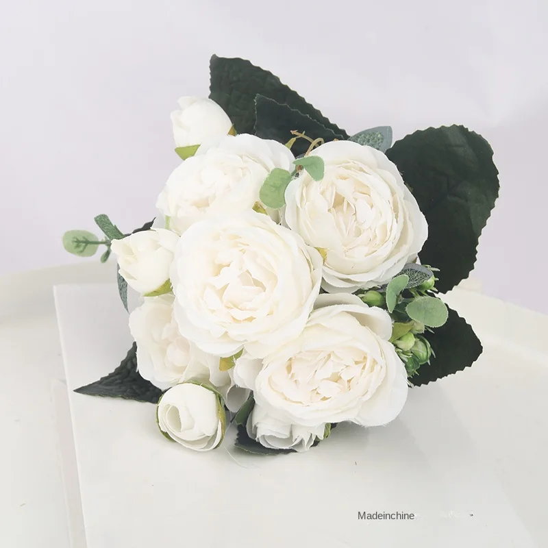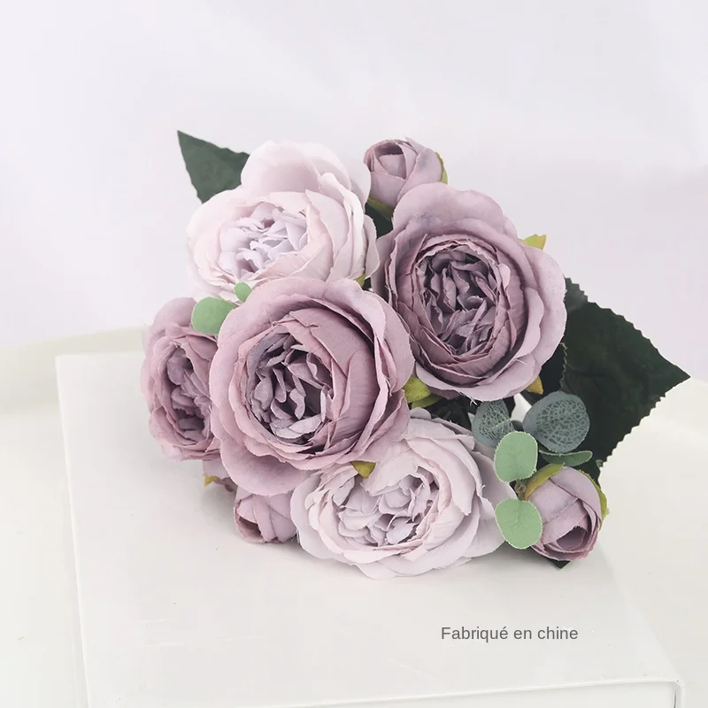 1 Bouquet 9 tête fleurs artificielles pivoine thé Rose camélia soie fausse fleur pour bricolage salon maison jardin mariage décoration