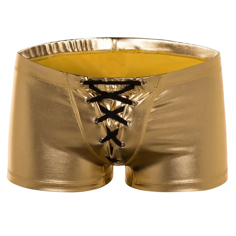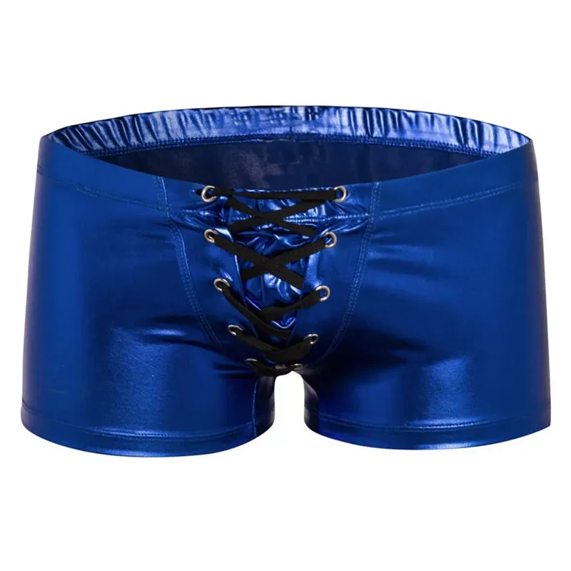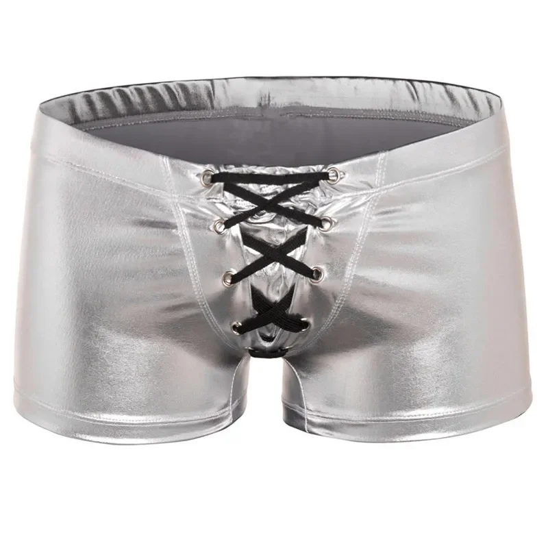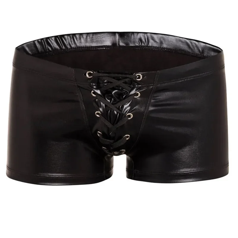 Le Boxer sexy en cuir PU pour hommes est un sous-vêtement d’entraînement, un short de natation, une culotte en latex et PVC à lacets. Il est fabriqué à partir de 80% de nylon et 20% de spandex, ce qui en fait un sous-vêtement confortable et extensible. Il est disponible en différentes tailles allant de S à XXL et est idéal pour toutes les occasions.