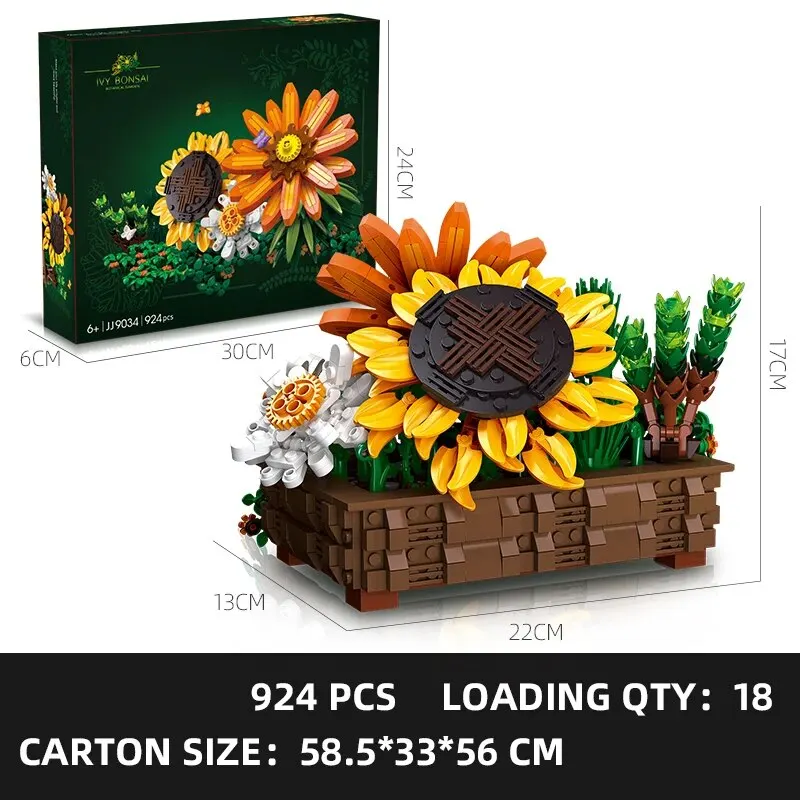 - Jouet créatif polyvalent combinant la beauté des tournesols, des plantes succulentes et des bonsaïs avec les blocs de construction