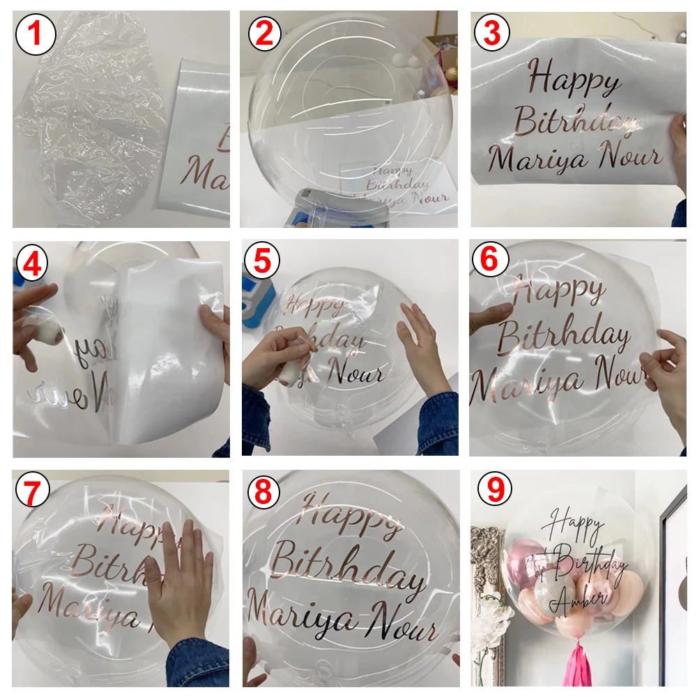 - Déchirez l’autocollant transparent et laissez l’autocollant personnalisé sur le ballon.