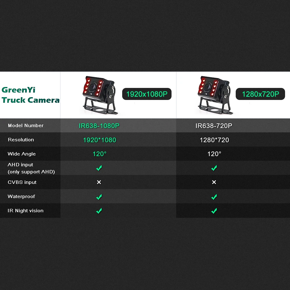 La caméra de vision nocturne GreenYi IR AHD offre une résolution de 1920x1080P pour des images claires et nettes. Utilisant la technologie AHD, elle nécessite un moniteur AHD pour être utilisée. La puce supérieure GC2053 AHD garantit une qualité d’image supérieure. La caméra est étanche et résiste à la décoloration. Avec 2000000 pixels, elle capture tous les détails. Sa petite taille de 46mm x 53mm en fait un choix pratique pour tous les véhicules. Fabriquée en acier inoxydable de haute qualité et en alliage d’aluminium, elle est résistante aux rayures. La caméra est également dotée de la technologie de vision nocturne IR, ce qui permet de capturer des images claires même dans l’obscurité totale. Le câble à 4 broches assure une transmission fiable du signal.