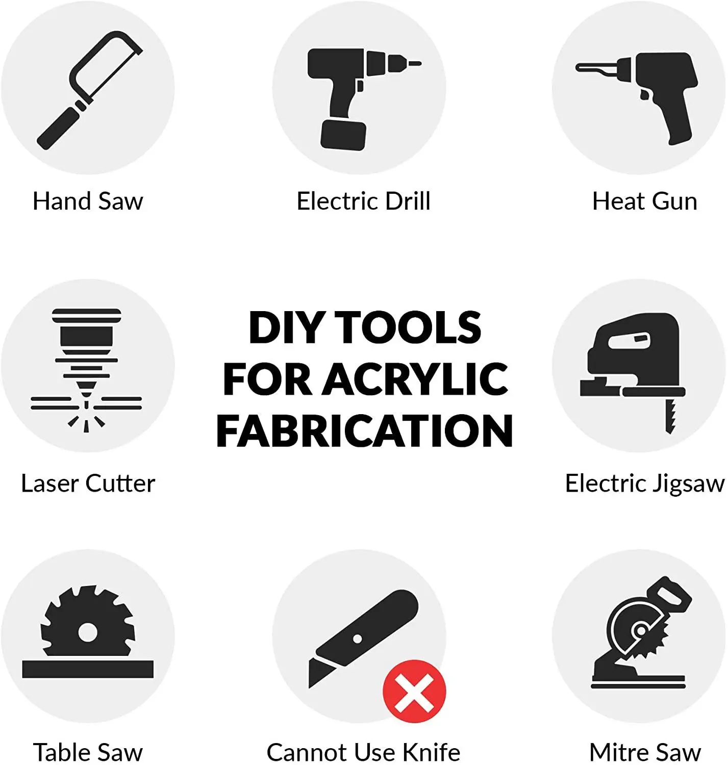 | Applications | Remplacements de fenêtre, écran ménager, meubles, pare-brise de bateau et moto, expositions, fenêtres et portes, barrières, signalisation, éclaboussures acryliques |