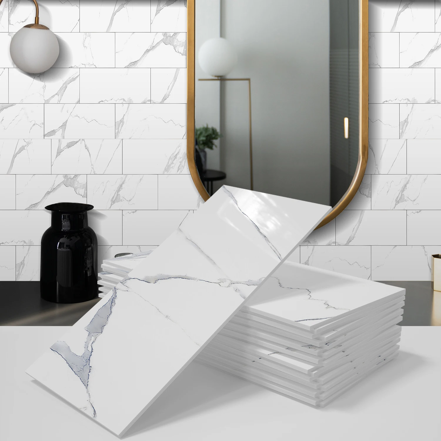 Avec sa texture réaliste de marbre blanc en 3D, ce carrelage PVC auto-adhésif offre une apparence haut de gamme à votre cuisine ou à votre dosseret. Vous pouvez créer un look sophistiqué et moderne sans avoir à dépenser une fortune en utilisant des finitions similaires en papier peint ou en carreaux en plastique.