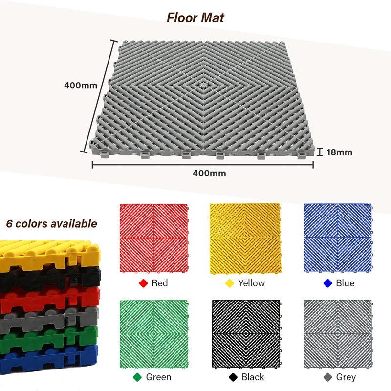 Ces dalles sont idéales pour les garages, ateliers, ou zones de lavage de voiture. Leur design modulable permet de créer des motifs personnalisés selon vos préférences.