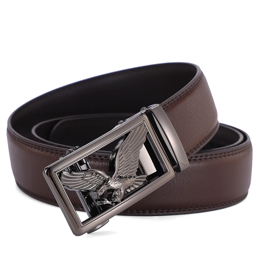 En conclusion, la ceinture en cuir véritable pour homme avec une sangle de taille design et une boucle aigle automatique est un produit de haute qualité. Le cuir de vache fendu utilisé pour sa fabrication est durable et résistant. Les boucles en alliage de zinc ne rouillent pas et ajoutent une touche de classe au design de la ceinture.
