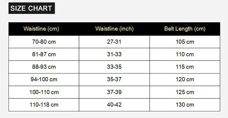 | Cuir de haute qualité | Alliage de zinc résistant à la rouille | Largeur: 3.5 cm | Couleurs disponibles: Noir, Marron | Tailles disponibles: 110cm, 120cm, 130cm |