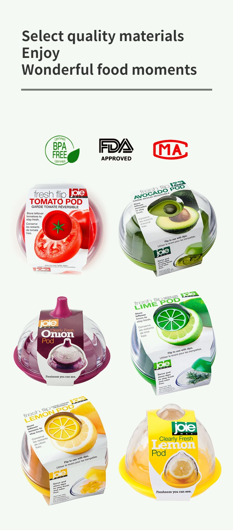 4. Matériau de qualité alimentaire, stockage dans le réfrigérateur sans odeur.