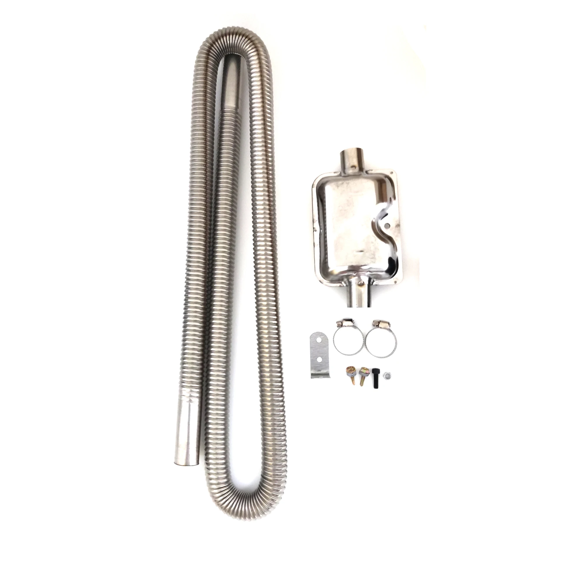 Le chauffage de stationnement diesel à air en acier inoxydable est un tuyau d’échappement conçu pour les véhicules tels que les voitures, les camions, les camionnettes et les bateaux. Fabriqué en acier inoxydable de haute qualité, il assure une durabilité et une résistance élevées aux conditions extérieures. Disponible en longueurs de 100cm, 150cm et 200cm, il s’adapte à différents types de véhicules.