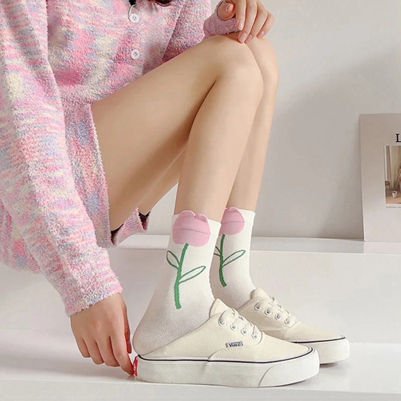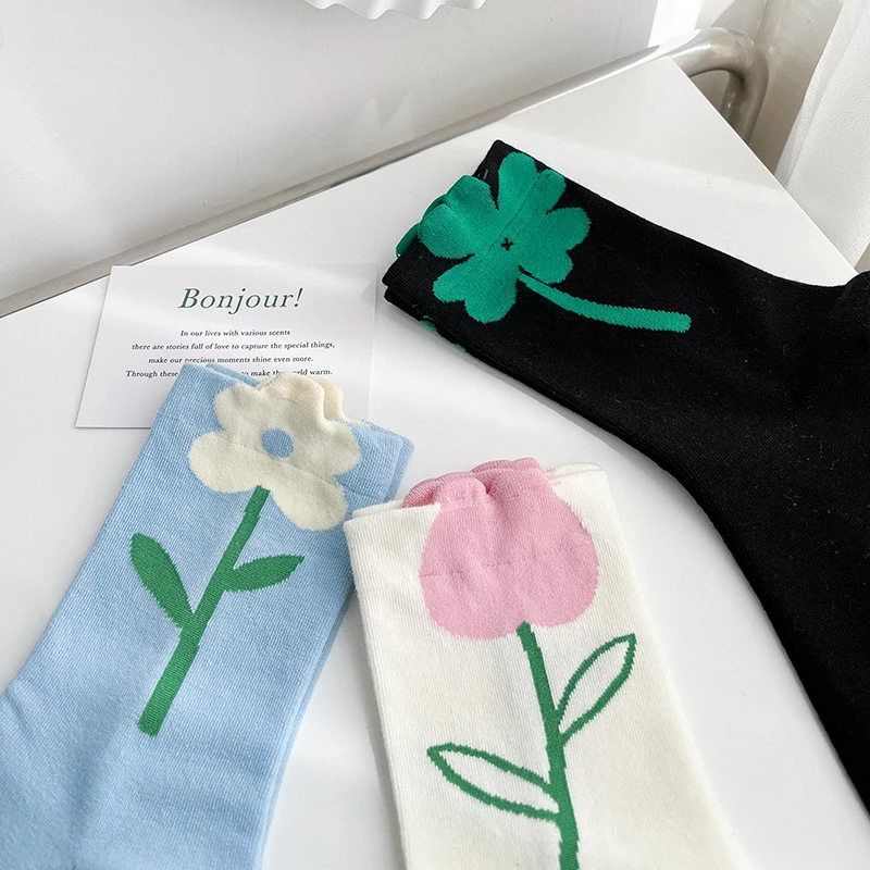 Les chaussettes à fleurs sont fabriquées en coton de haute qualité, doux et respirant, avec un niveau de confort extrêmement élevé. Elles sont adaptées pour porter pendant une longue période sans aucune irritation de la peau.