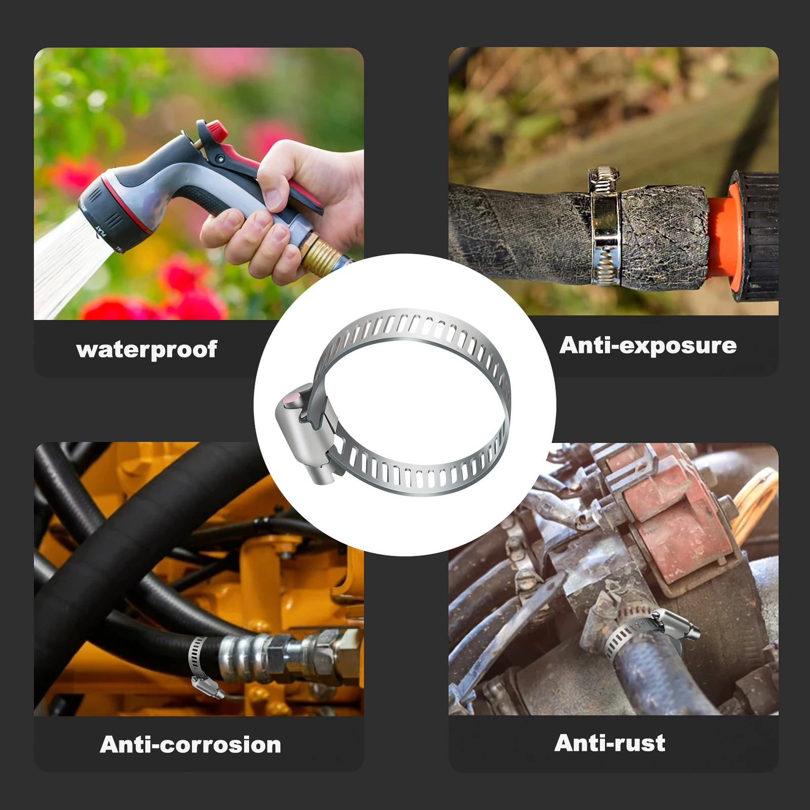 Ces colliers de serrage en acier inoxydable ont une large gamme d’applications. Ils peuvent être utilisés pour la fixation de tuyaux, de câbles, de tuyaux de carburant, etc. Ils conviennent également pour une utilisation intérieure ou extérieure dans les automobiles, les industries, les navires, les maisons, etc.
