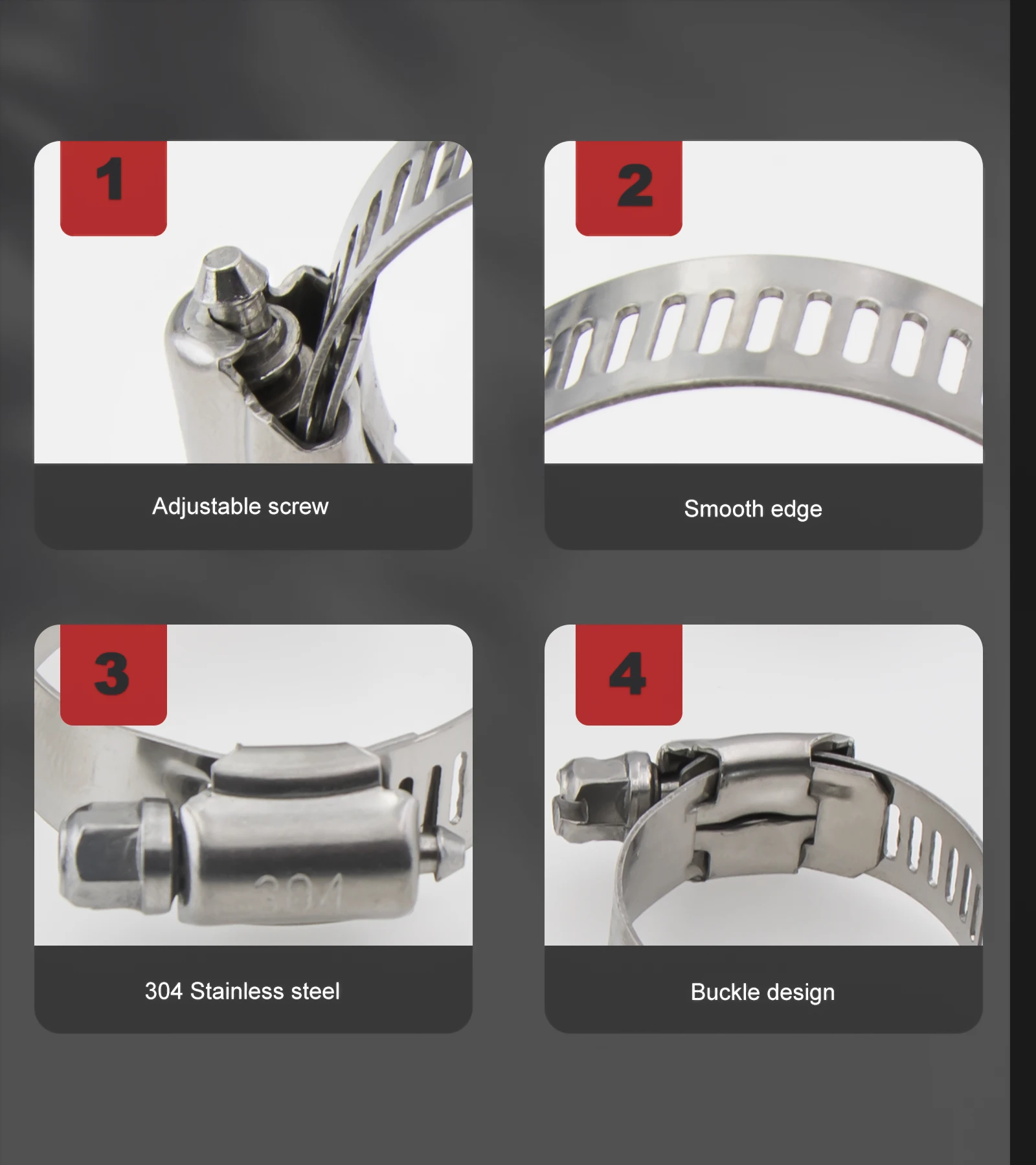 Grâce aux vis de réglage, les colliers de serrage en acier inoxydable peuvent être ajustés en fonction du diamètre du tuyau. Cette conception réglable permet une utilisation avec différentes tailles de tuyaux, ce qui le rend très polyvalent.