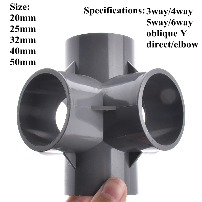 | PVC | Gris | Droit, coude, t, 3 voies, 4 voies, 5 voies, 6 voies | 20mm, 25mm, 32mm, 40mm, 50mm |