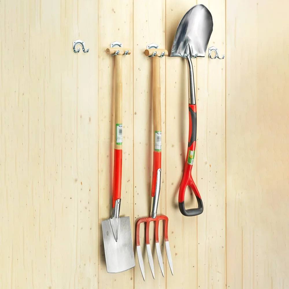 | Utilisation large | Il est parfait pour accrocher des pelles, des outils de jardin et des balais. La surface des crochets suspendus a un revêtement lisse qui empêche la rouille même après une longue période d’utilisation par temps humide. |