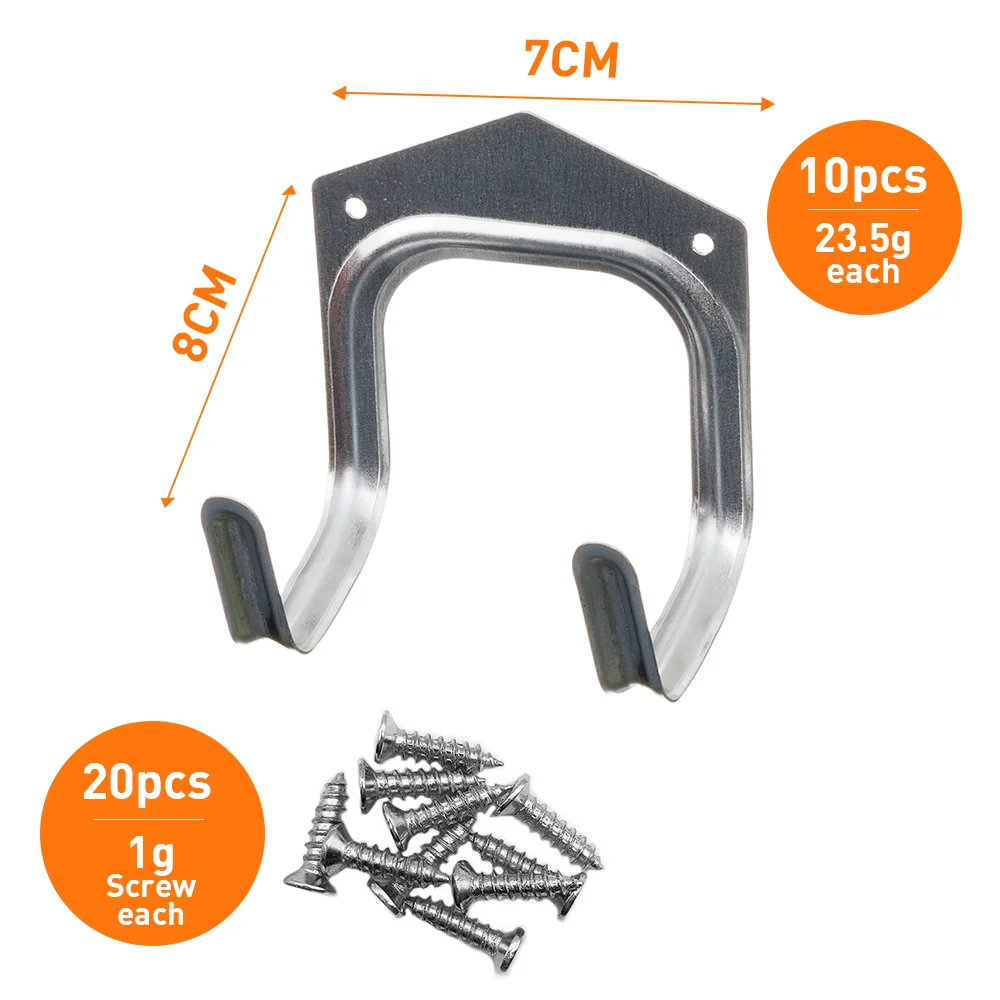 | Haute qualité | Support de l’appareil à double crochet est fait de matériaux de haute qualité et de fer solide lourd. Le porte-outil pour le garage est parfait pour trier les outils de jardin et ranger le hangar. |