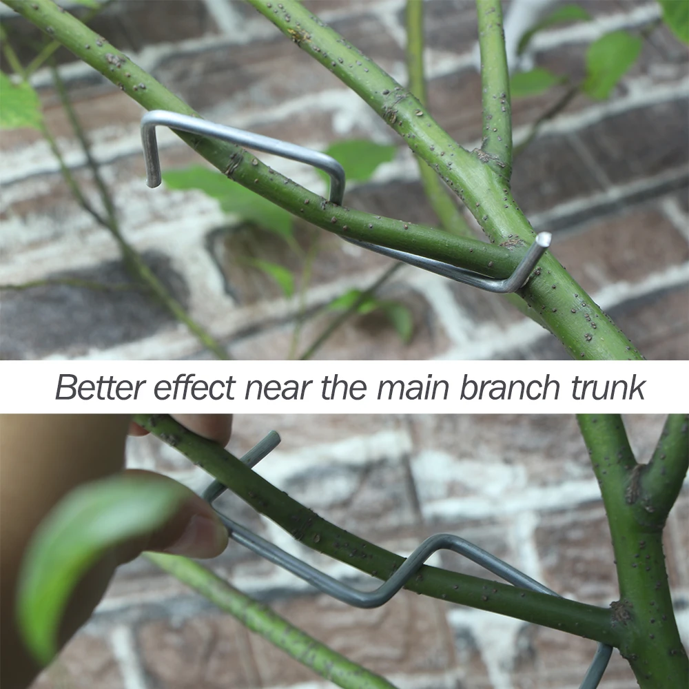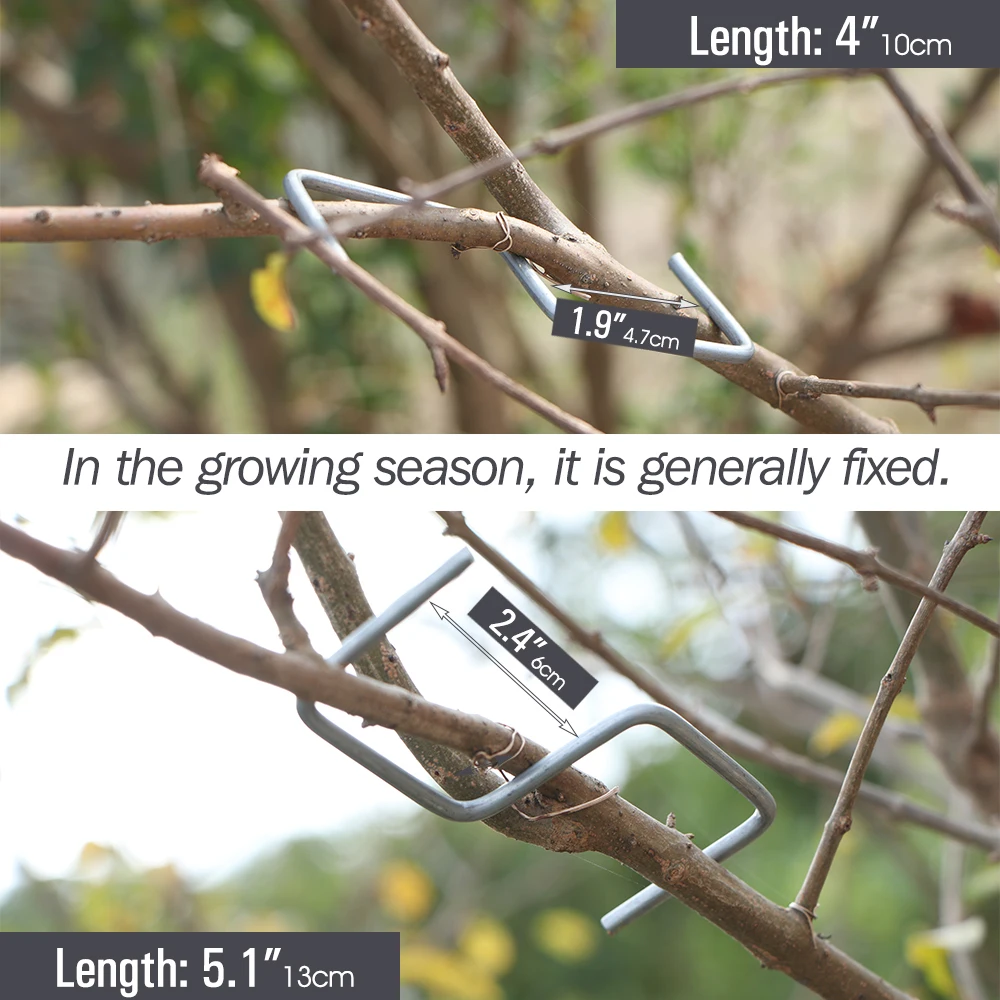 Ces écarts de branches sont disponibles en trois tailles différentes (8cm, 10cm, 13cm) pour convenir à différentes épaisseurs de branches. Ils peuvent être utilisés pendant la saison de croissance pour fixer les branches et favoriser leur croissance dans une direction spécifique. Cependant, il est important de retirer les écarteurs à temps pour éviter que le fil ne se développe dans la branche.
