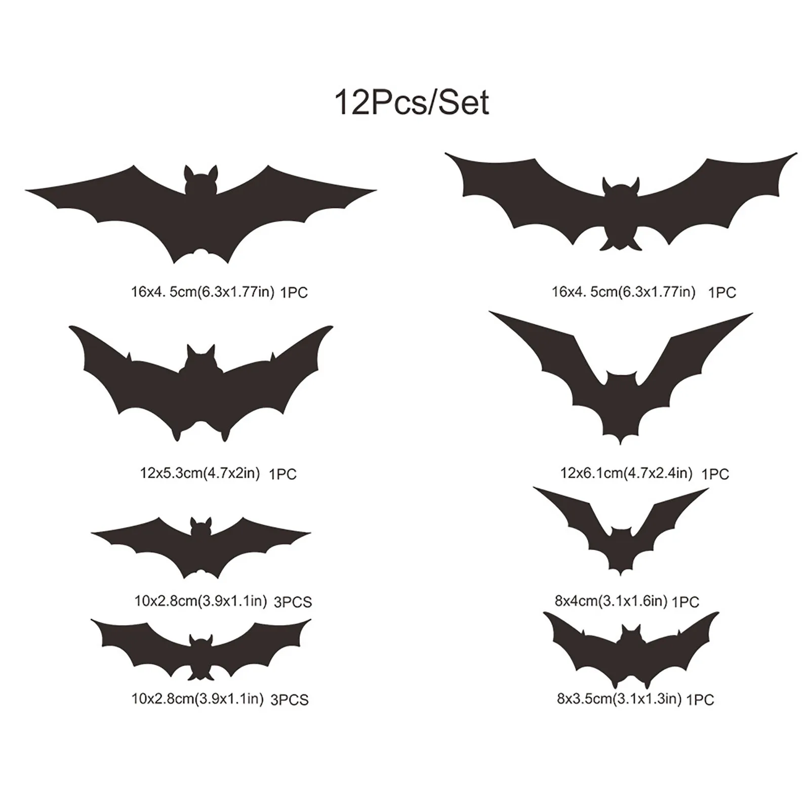 - 1 ensemble d’autocollants chauve-souris en PVC (12 pièces)