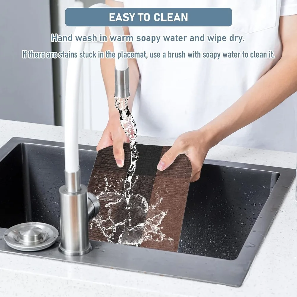 Disponible dans un paquet de 6, les sets de table en vinyle tissé Crossweave avec Cowijk sont parfaits pour protéger votre table contre les taches et les marques. Ils sont faciles à nettoyer, vous pouvez les laver à la machine ou les essuyer avec un chiffon humide et de l’eau savonneuse. Vous pouvez même les brosser doucement avec une brosse douce en cas de taches tenaces. Ces sets de table sont également résistants à la chaleur, pouvant supporter des températures jusqu’à 176 °F (80 °C), ce qui les rend parfaits pour protéger votre table des plats chauds. Ils sont également résistants au glissement grâce à leur motif de tissage en vinyle PVC de qualité. Les sets de table ont un look classique qui peut ajouter une touche dynamique à votre table, que ce soit pour un pique-nique, un dîner ou une fête. En plus de leur utilisation personnelle, ils peuvent également être offerts en cadeau à différentes occasions.