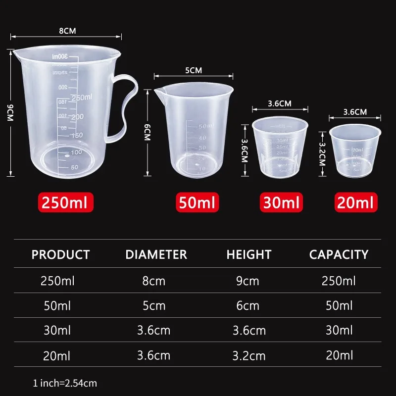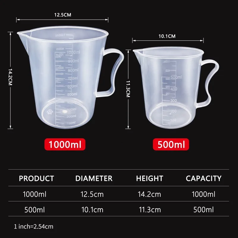 Test et avis sur le gobelet doseur gradué en plastique transparent, récipient pour bécher de cuisson, pichet de mesure liquide, 6 pièces/ensemble