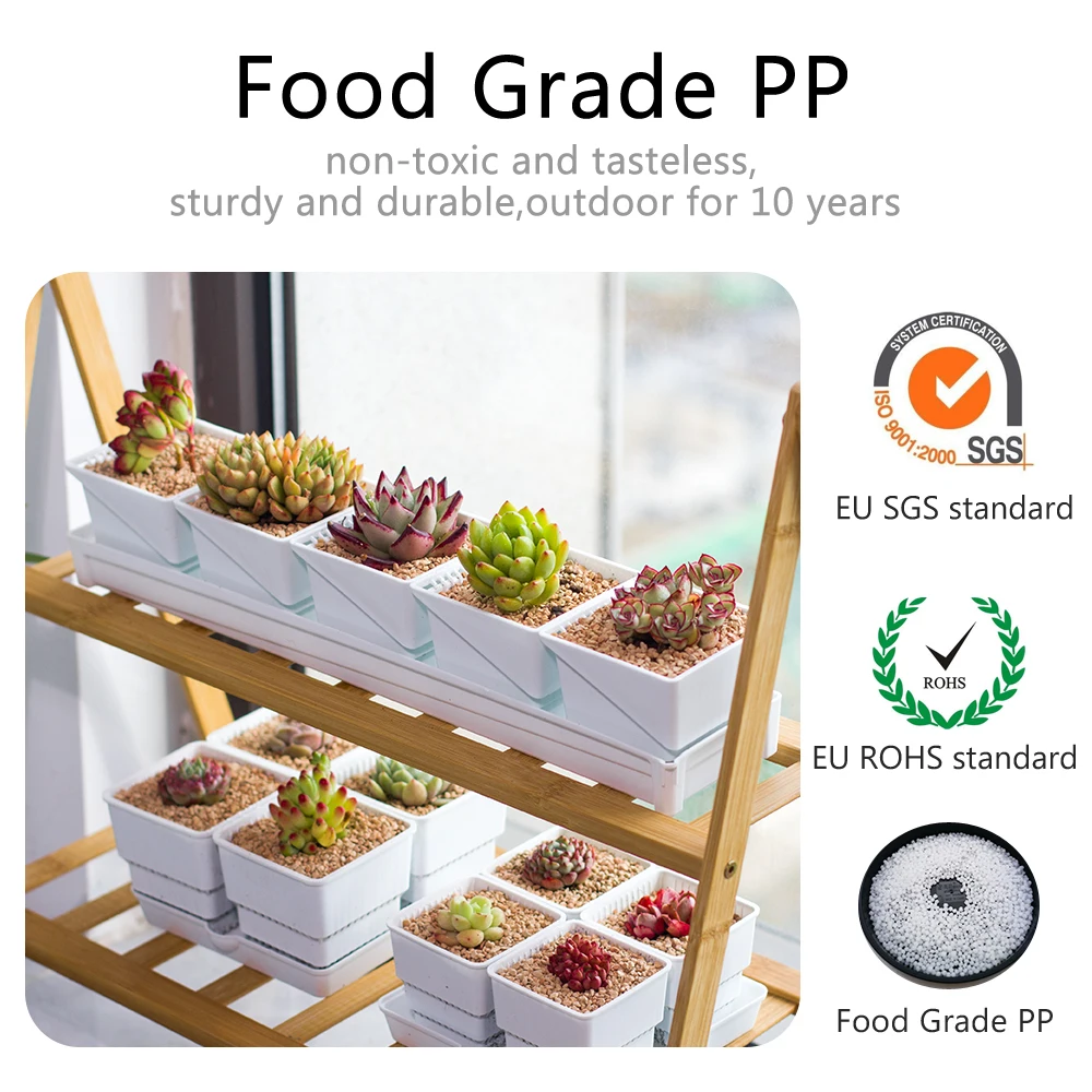 Les pots de plantes succulentes en plastique Meshpot sont fabriqués à partir de PP (polypropylène), un nouveau matériau de PP qui offre une excellente perméabilité à l’eau et à l’air. Ces pots sont conçus pour fournir un drainage maximal, favorisant ainsi le développement sain des racines. De plus, ils favorisent un bon mouvement de l’air, ce qui empêche les racines de s’étouffer. Le set est disponible en différentes tailles et styles, ce qui les rend polyvalents pour une utilisation intérieure et extérieure. Les pots sont également conformes aux normes alimentaires et ont obtenu la certification SGS.
