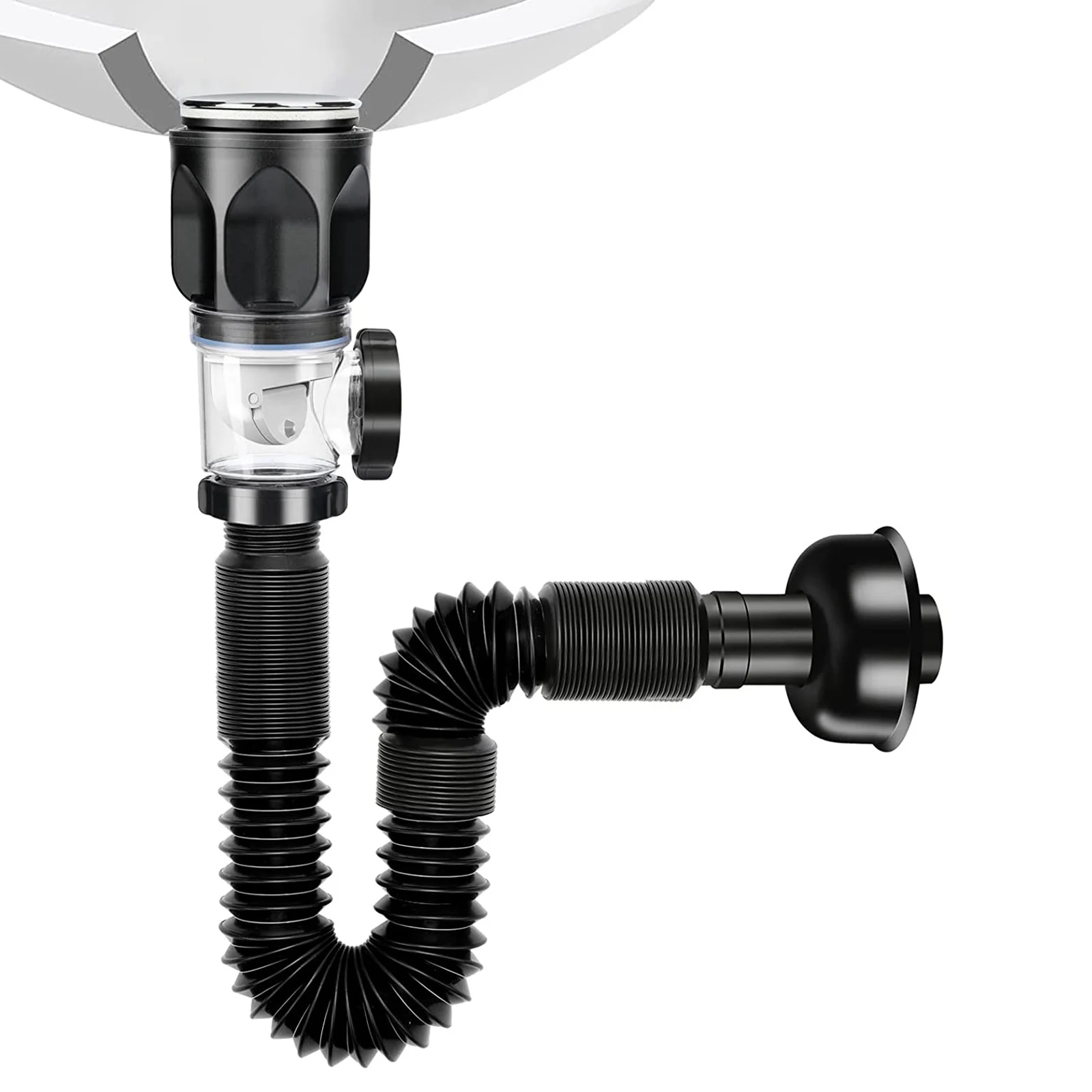 Le kit de tuyau de vidange est conçu avec un bouchon d’évier anti-colmatage, qui peut collecter les poils et les fines, et empêche le colmatage du drain.