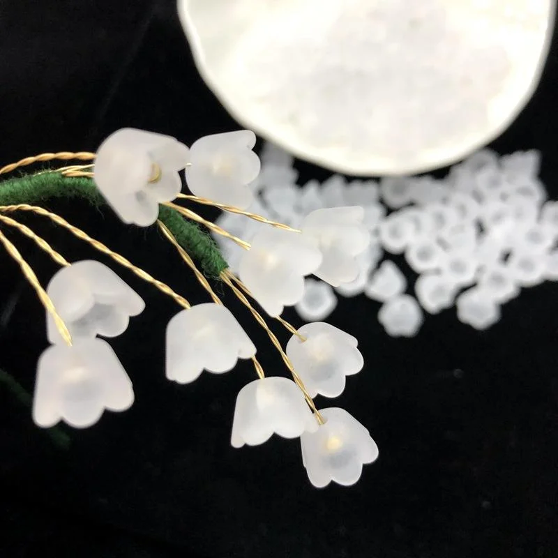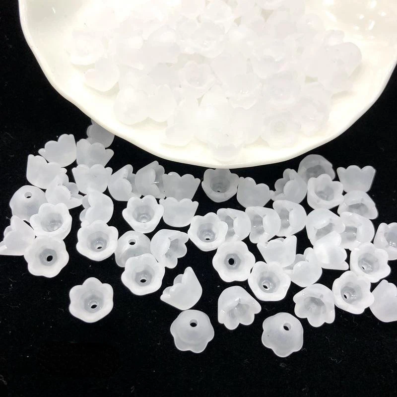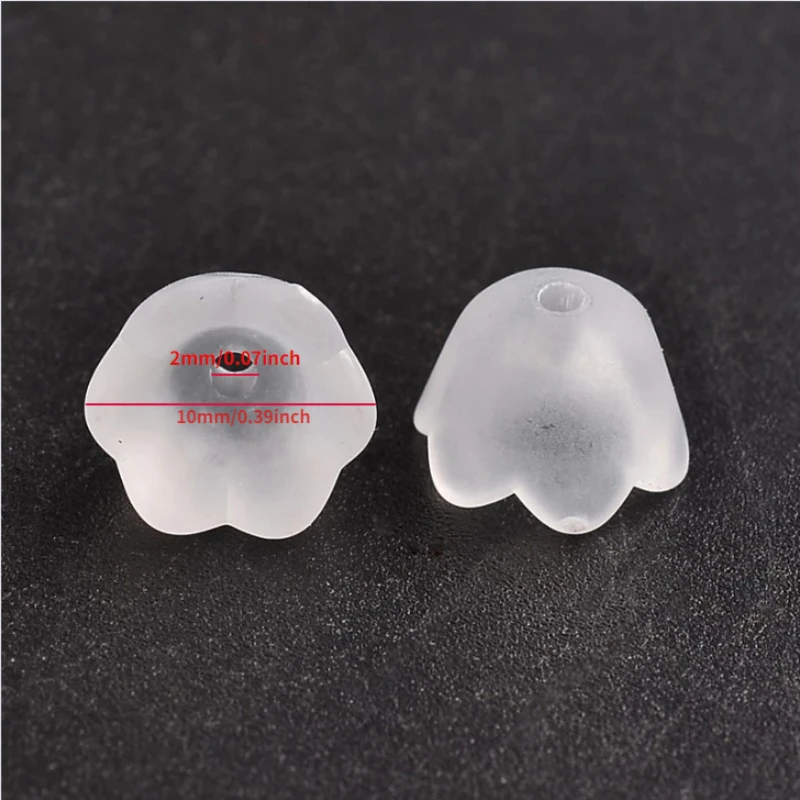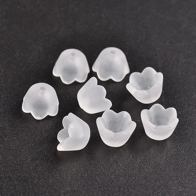 Les perles acryliques transparentes ont un aspect givré et doux. Leur forme de fleur de tulipe et de muguet de la vallée en fait une alternative abordable aux perles plus chères. Elles permettent de diriger l’attention focalisée sur les perles d’accent de spécialité dans vos créations de bijoux. Elles sont particulièrement populaires pour les boucles d’oreilles et les grands colliers et bracelets de déclaration.