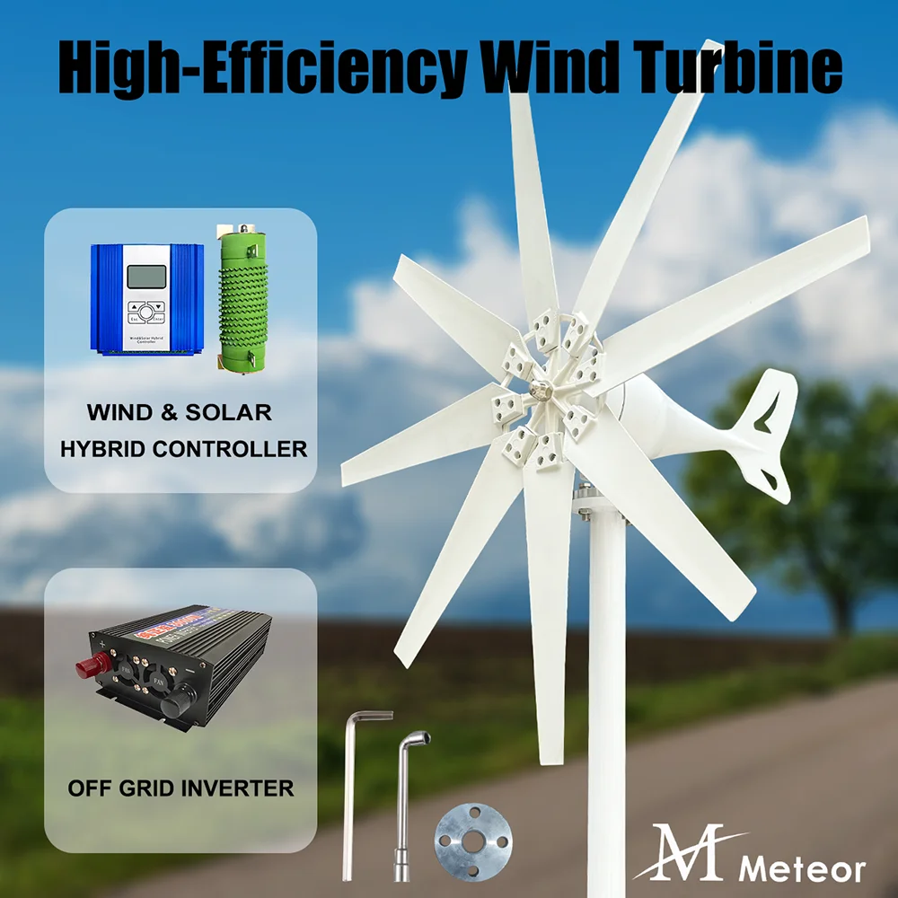 Générateur de turbine éolienne à haute efficacité 2000W 12V 24V moulin à vent à axe horizontal puissance d’énergie gratuite avec usine pour usage domestique 220V