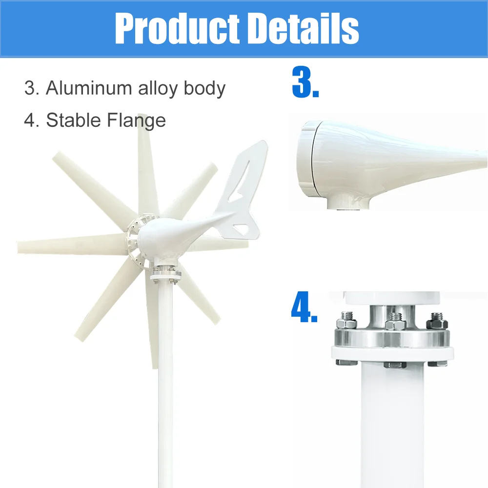 | Générateur d’éolienne à axe horizontal | Haute efficacité, puissance de 2000W, tension de 12V/24V, idéal pour un usage domestique |